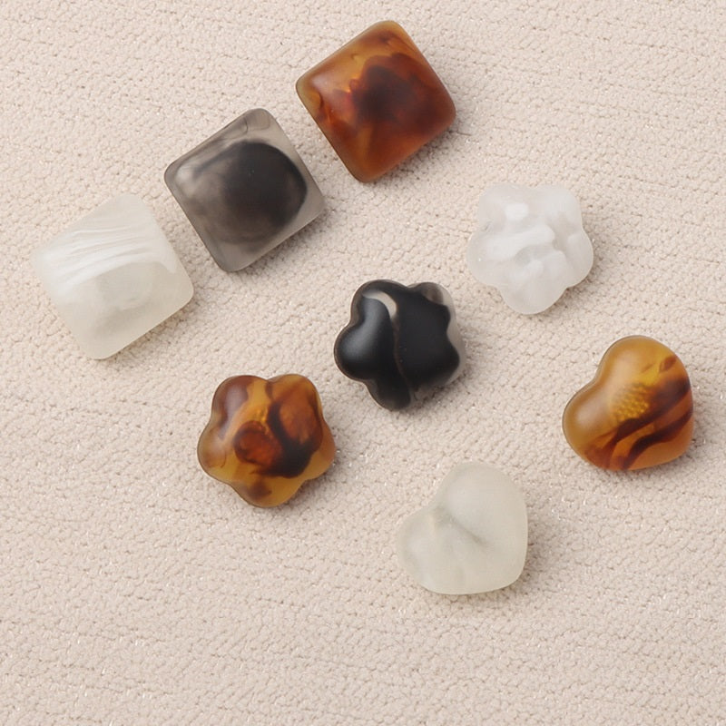 Butoane cu tija în formă pătrată, inimă, floare, din rășină alb-negru-maro, pachet de 40