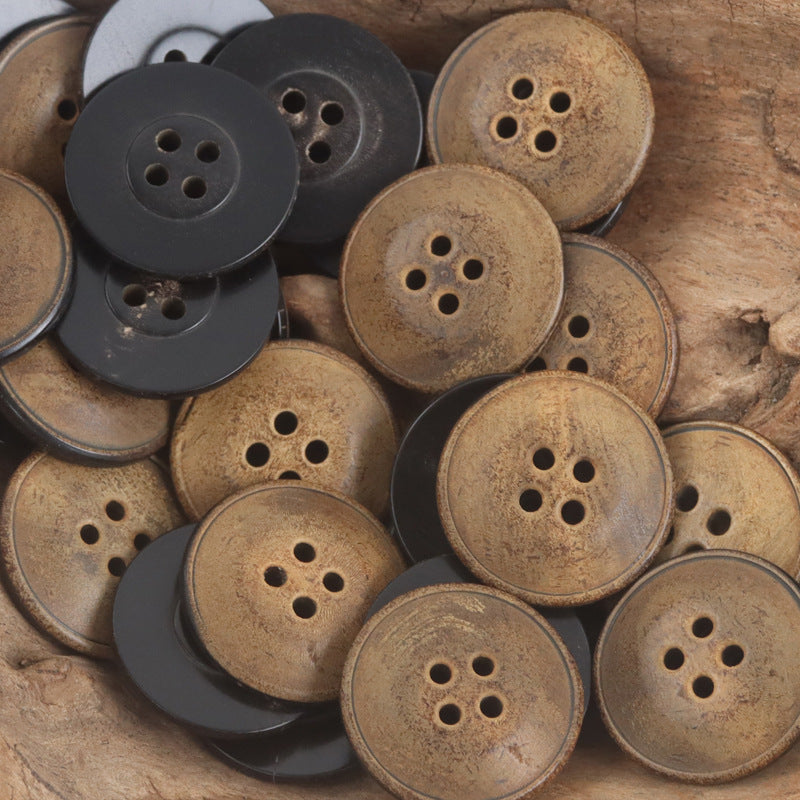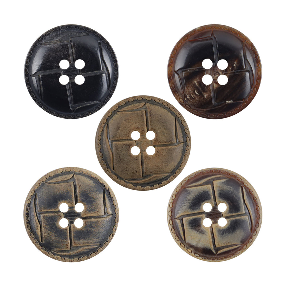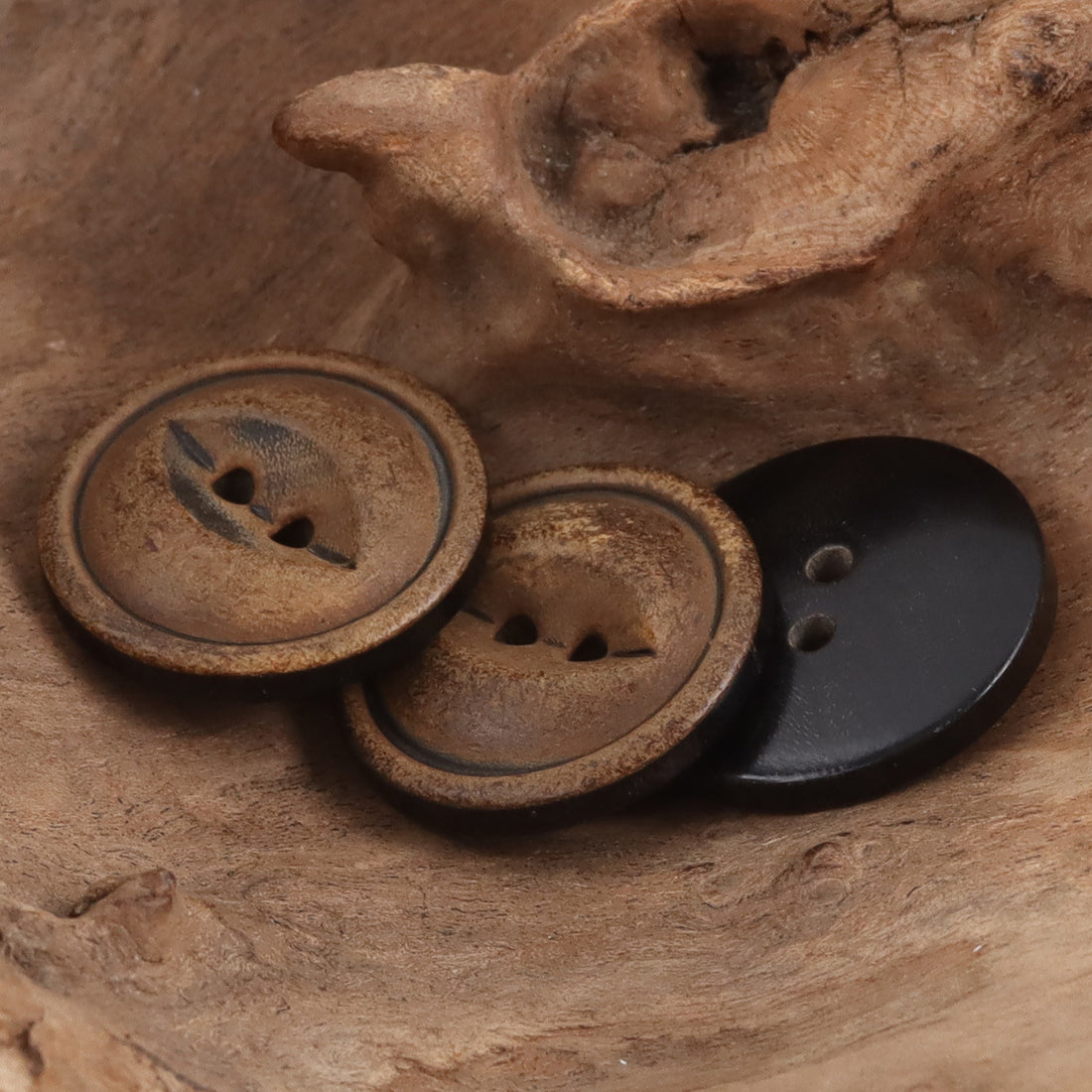 Butoane din corn de bivol ars cu patru găuri de 22mm pentru decorarea pălăriilor, 10 bucăți