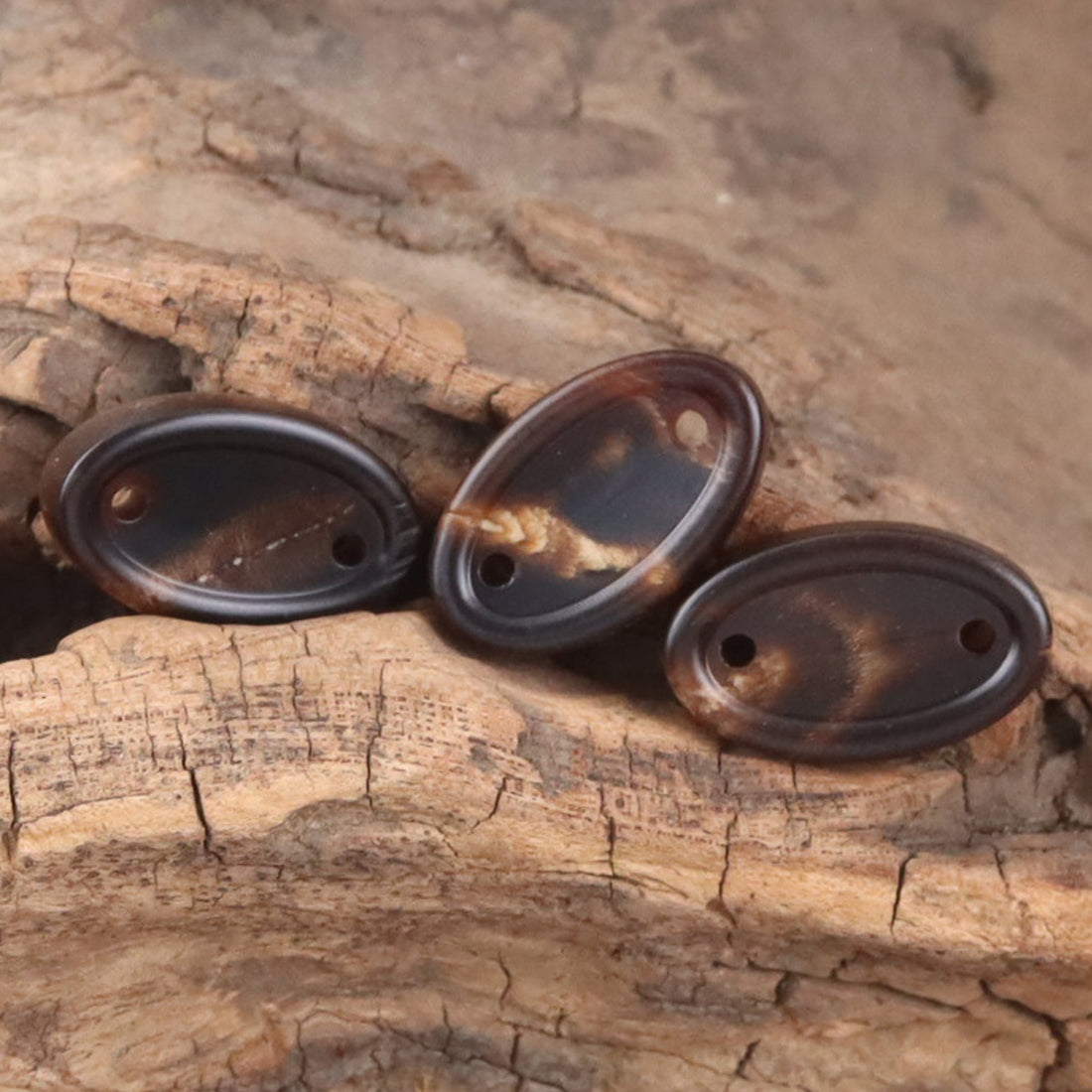 Butoane negre și maro din corn natural, ovale de 60mm, cu un singur orificiu, 10 bucăți