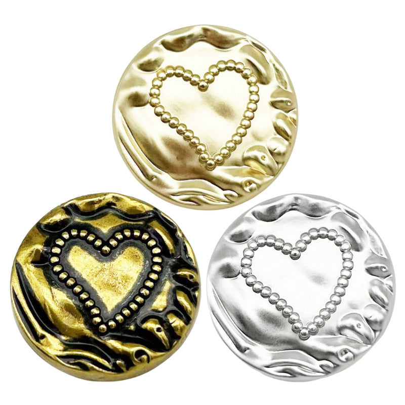 Buton metalic rotund vintage inimă cu margine ondulată, 12 bucăți