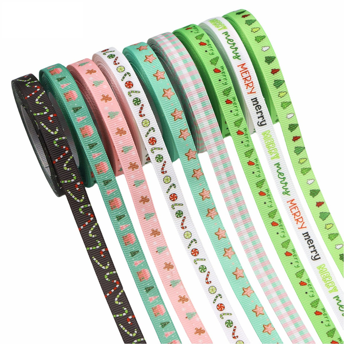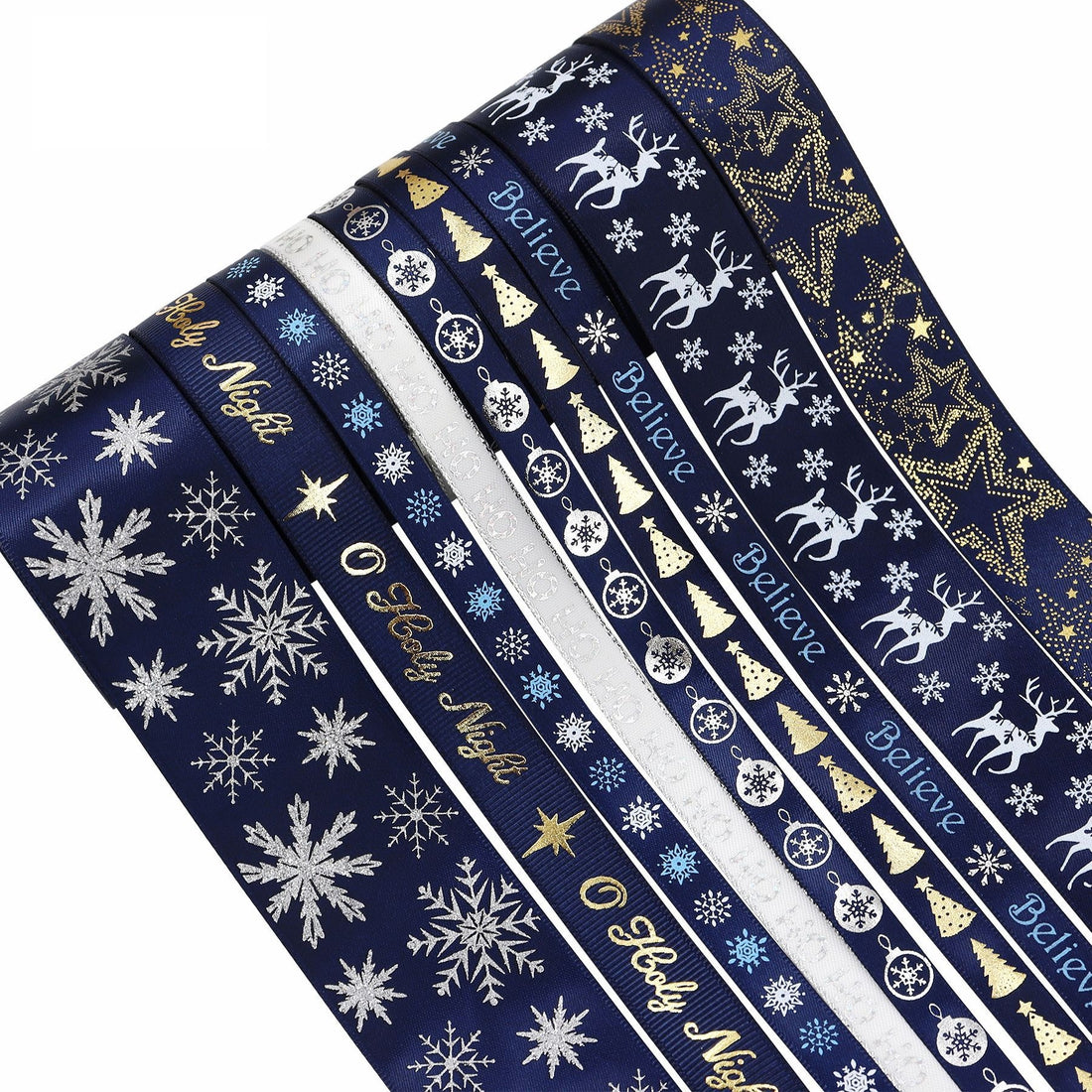 Panglică de Crăciun veselă de 10mm, set de 9 bucăți, 45 de yarzi, pentru coronițe și brazi festivi