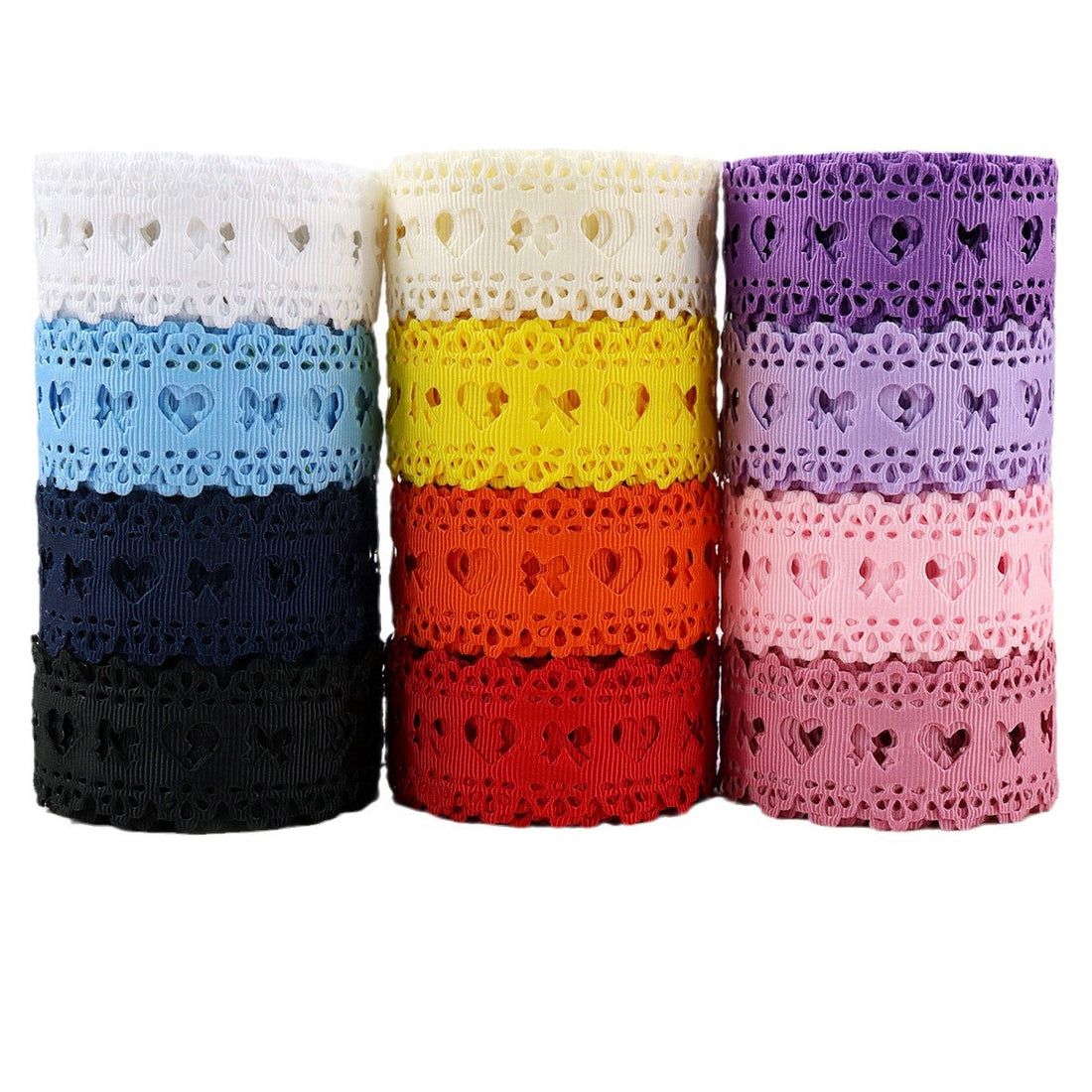 Panglică de artizanat grosgrain cu decupaj inimă de 30MM, pachet de 12, 60 de yarzi