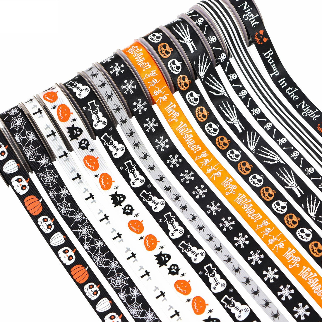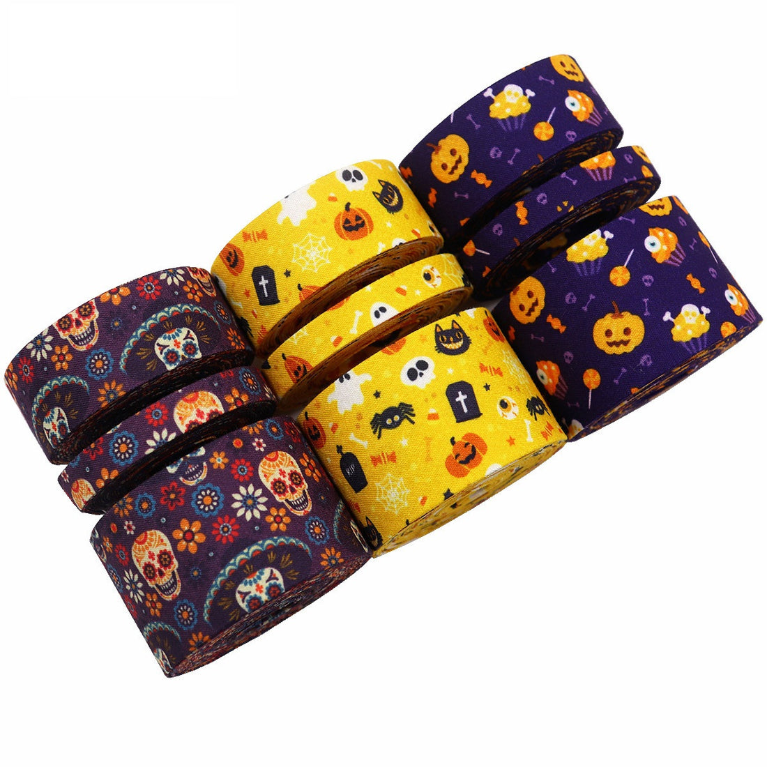 Panglică bias imprimată de Halloween 10/25/38mm, set de 9 bucăți, 45 de yarzi