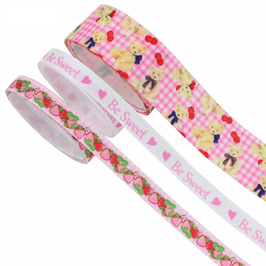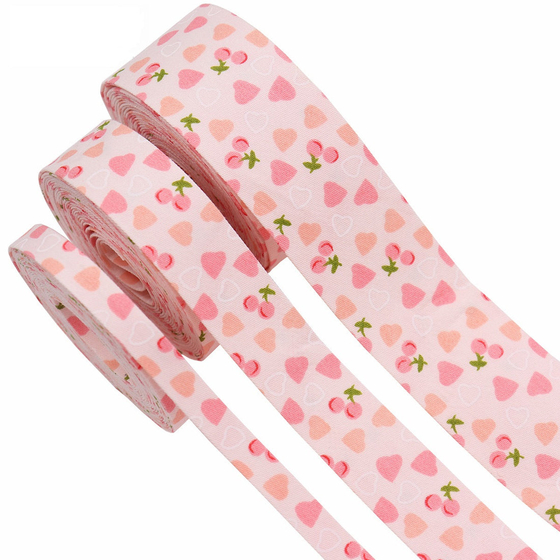 10/25/38mm Panglică roz cireșe pentru bandă de păr, panglică pentru meșteșuguri, set de 3 bucăți, 15 yarzi