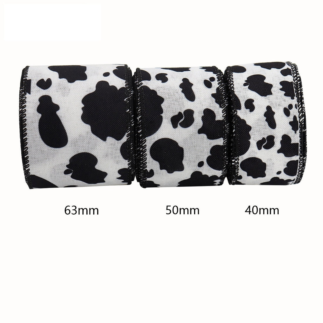 Bandă tiv cu margine de sârmă 40/50/63mm Temă imprimeu vacă Panglică 3 pachete 15 yarzi