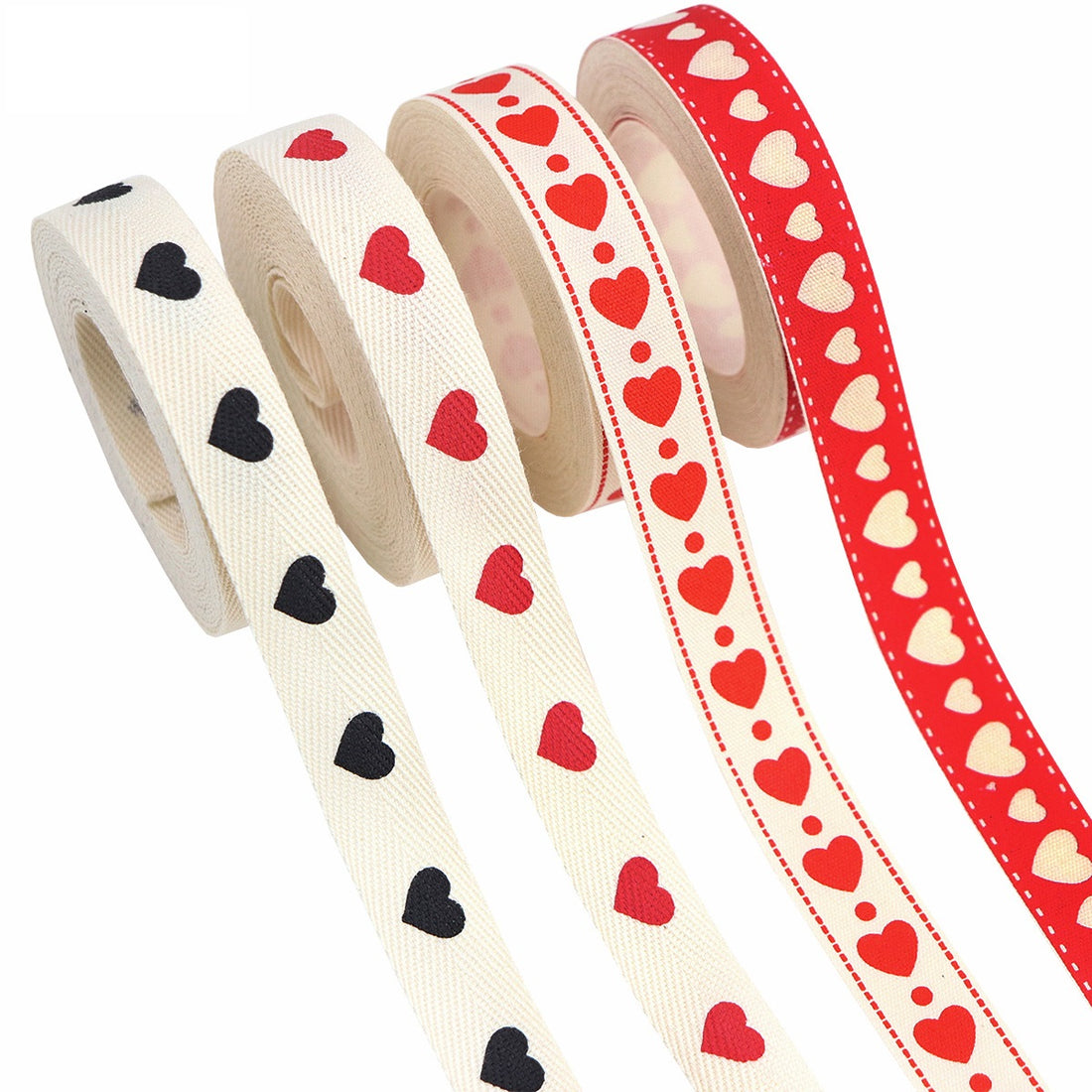 Panglică de bumbac 16mm inimă de Valentine's pentru decorațiuni de nuntă 40 de yarzi