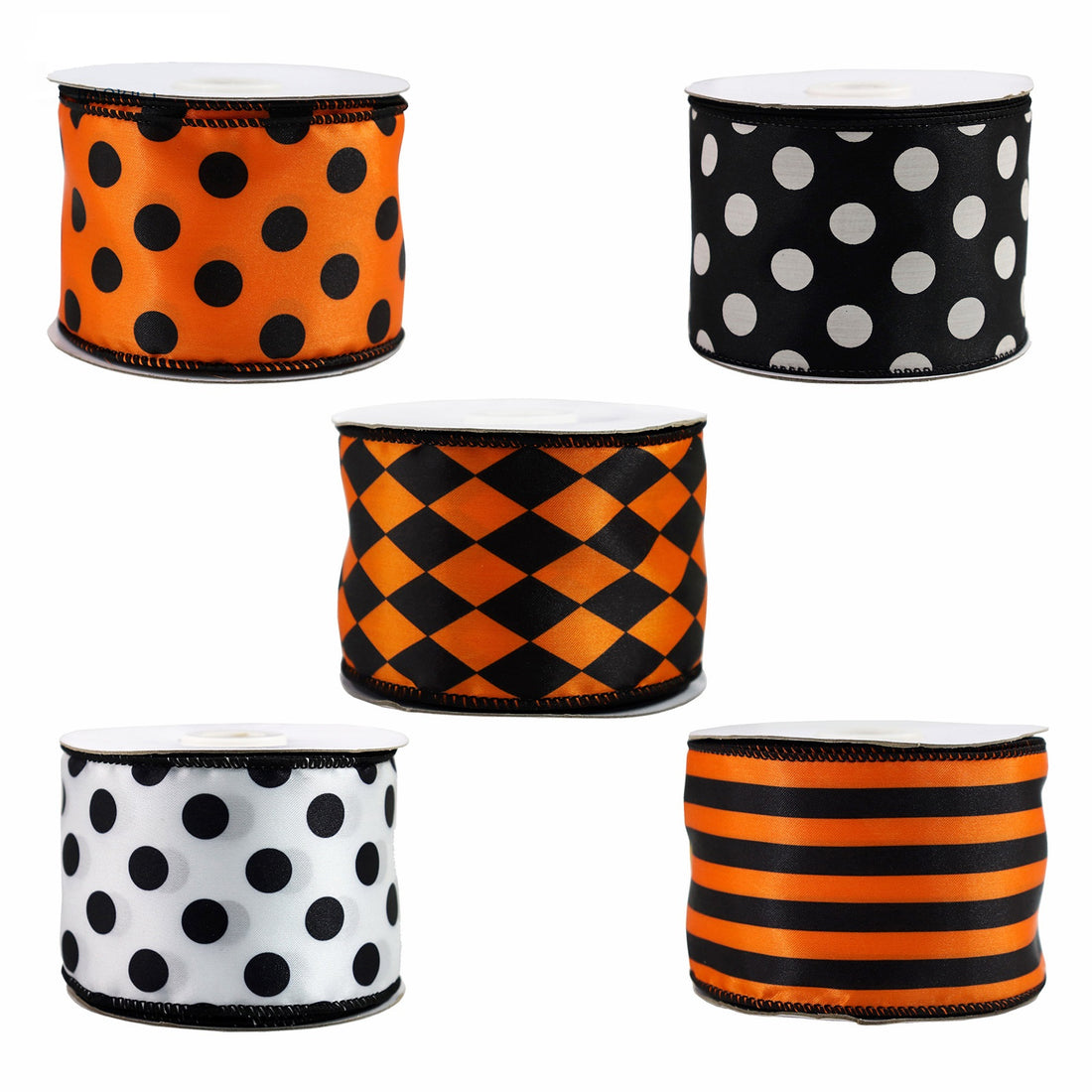 Panglici de Halloween cu buline, dungi și romburi de 2,5 inch, set de 5 bucăți
