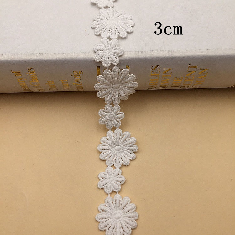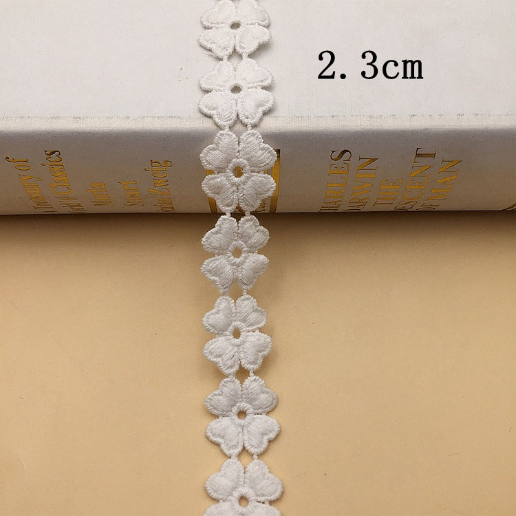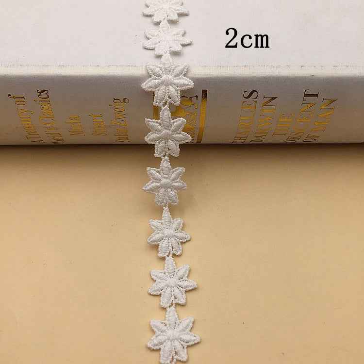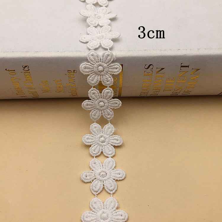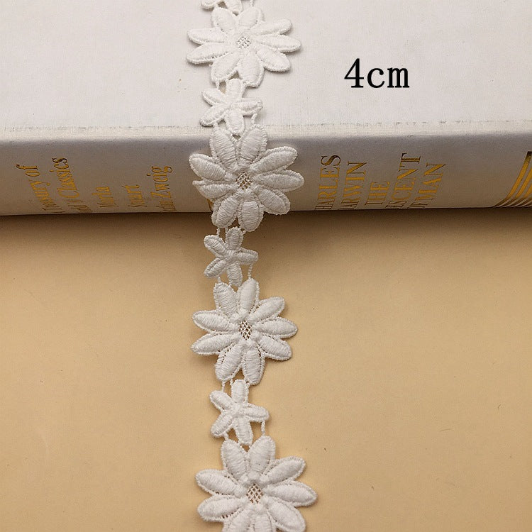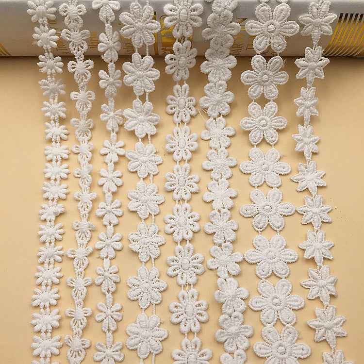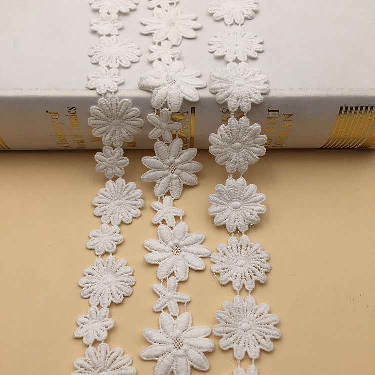 Dantelă brodată florală din bumbac alb 1.5-4cm, 10 yarzi