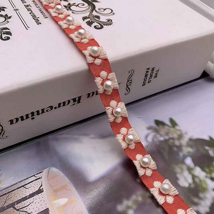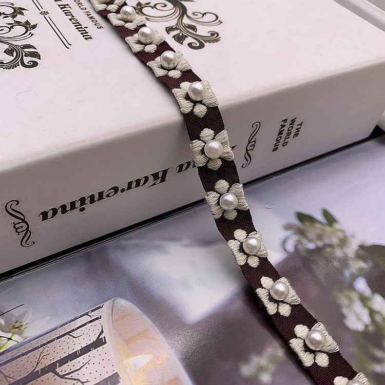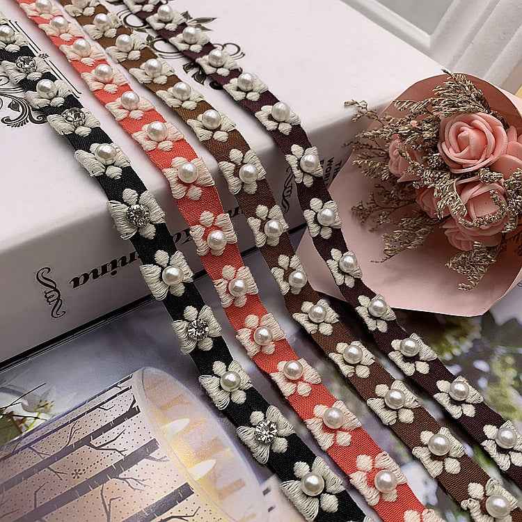Dantelă jacquard etnică de 1,5 cm cu accente de perle – 40 de yarzi