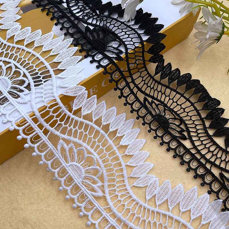 Dantelă brodată solubilă în apă din fibră de lapte lată de 10CM - Margine moale ecologică pentru îmbrăcăminte și decor pentru casă 5 yarzi