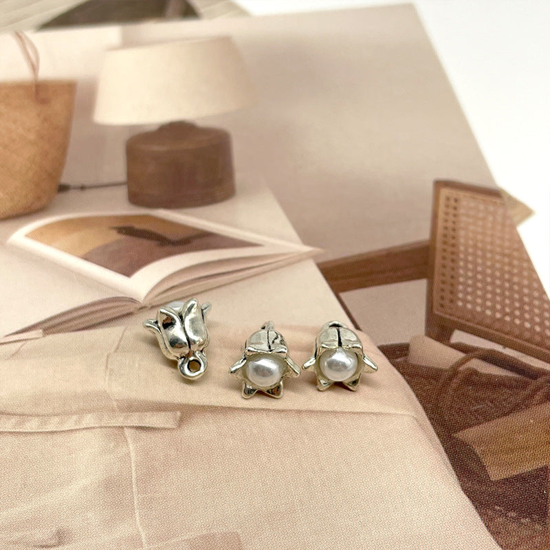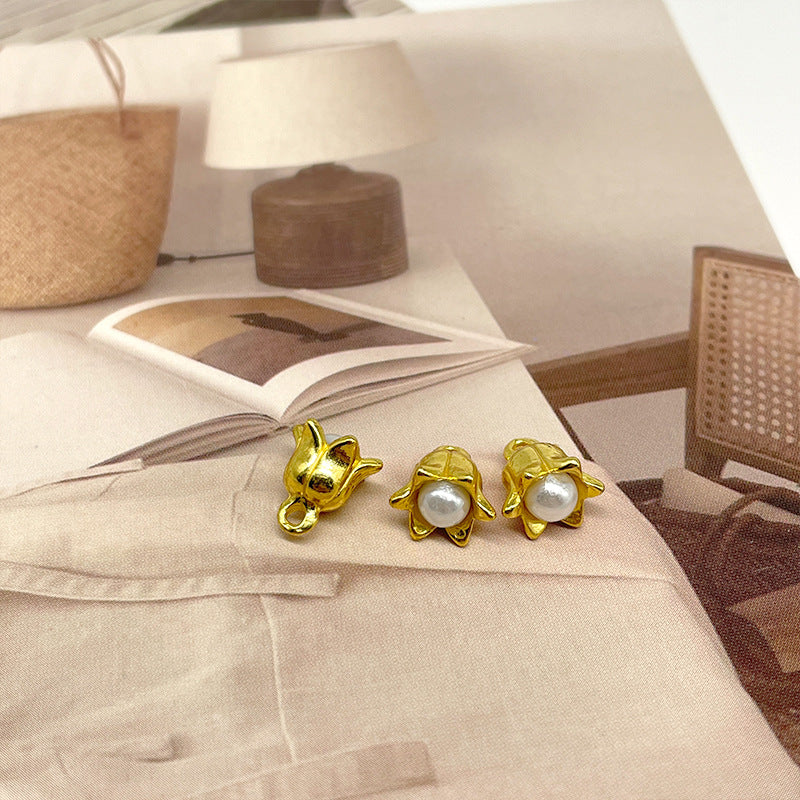 10mm Nasturi metalici aurii și argintii cu floarea clopoțeilor și miez de perlă pentru butoni de cămașă și jachetă 50 buc