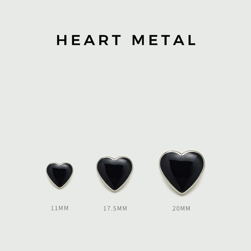 11/17.5/20mm Butoane metalice negre în formă de inimă 20 bucăți
