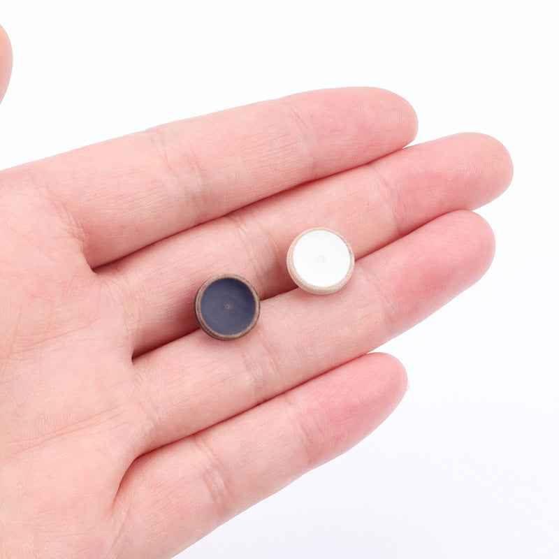 Acești nasturi rotunzi din lemn de 11,5 mm sunt o completare încântătoare pentru hainele copiilor. Având un design cu picioruș, sunt ușor de atașat la pulovere și cardigane. Finisajul vopsit albastru și alb cu aspect uzat le conferă un farmec vintage fermecător.