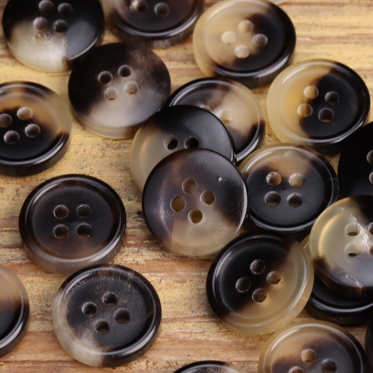 Nasturi simpli, rotunzi, cu margini rotunjite, din corn natural galben de bovină de 11,5 mm - Negru și Bej, nasturi de înaltă calitate pentru cămăși, tricotaje și mătase 6 buc
