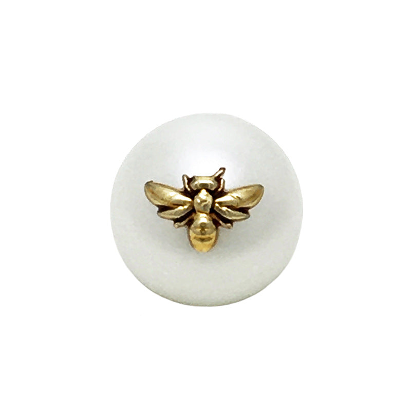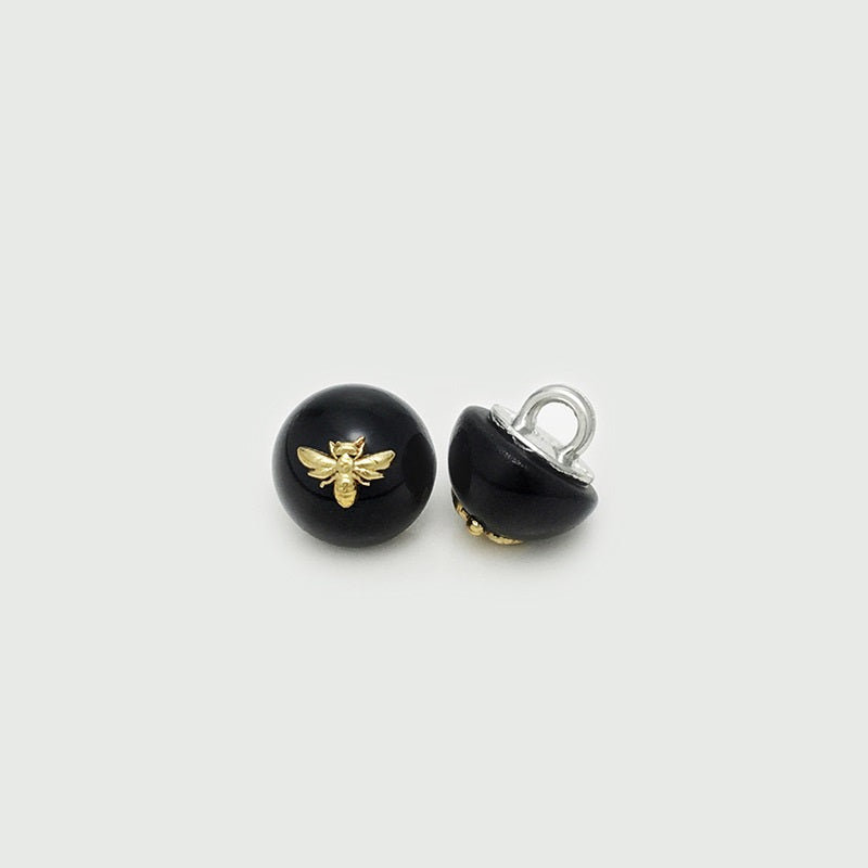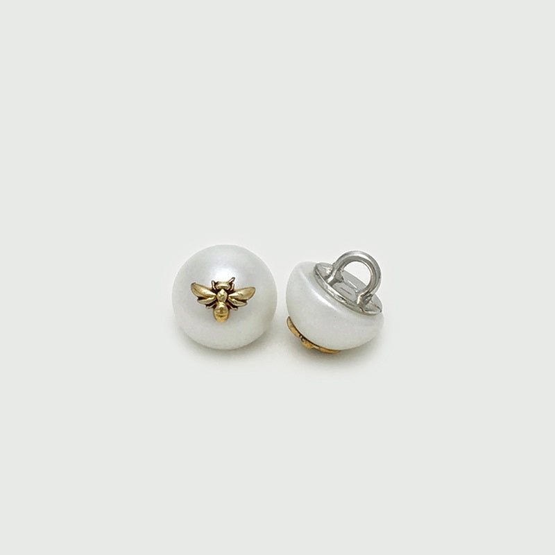 Butoane alb-negru cu perle de 11mm, model albină, cu buclă, 20 bucăți