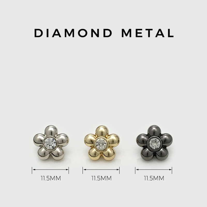 Nasturi pentru cămașă din metal cu floare de diamant negru, argintiu și auriu de 11mm, 30 bucăți