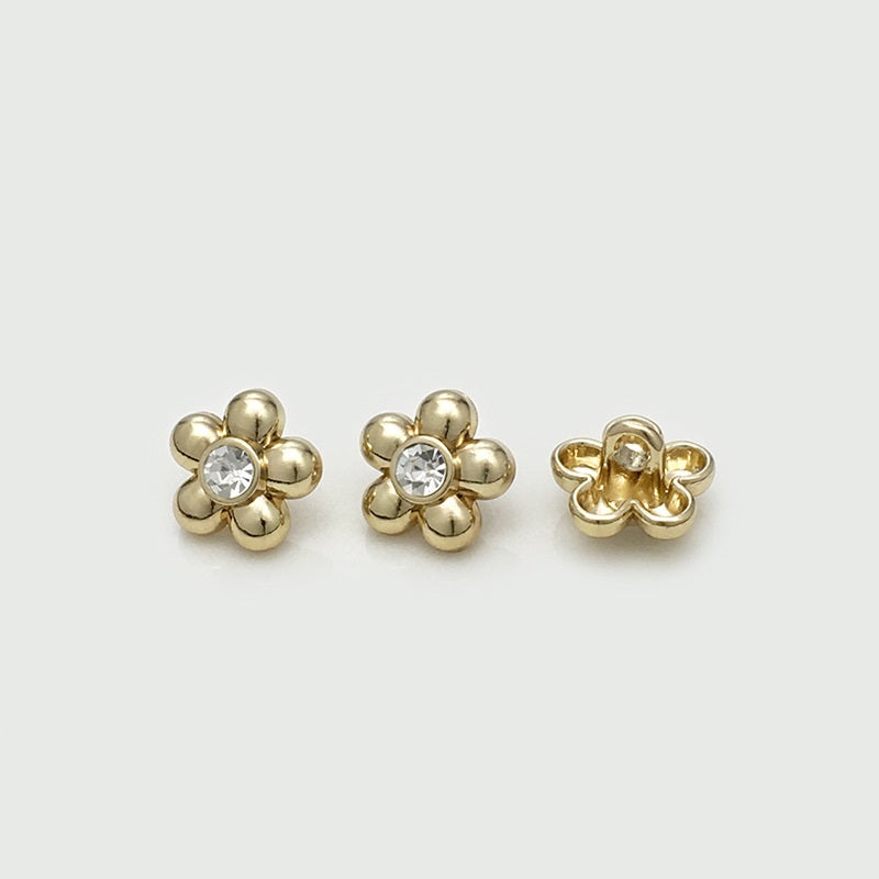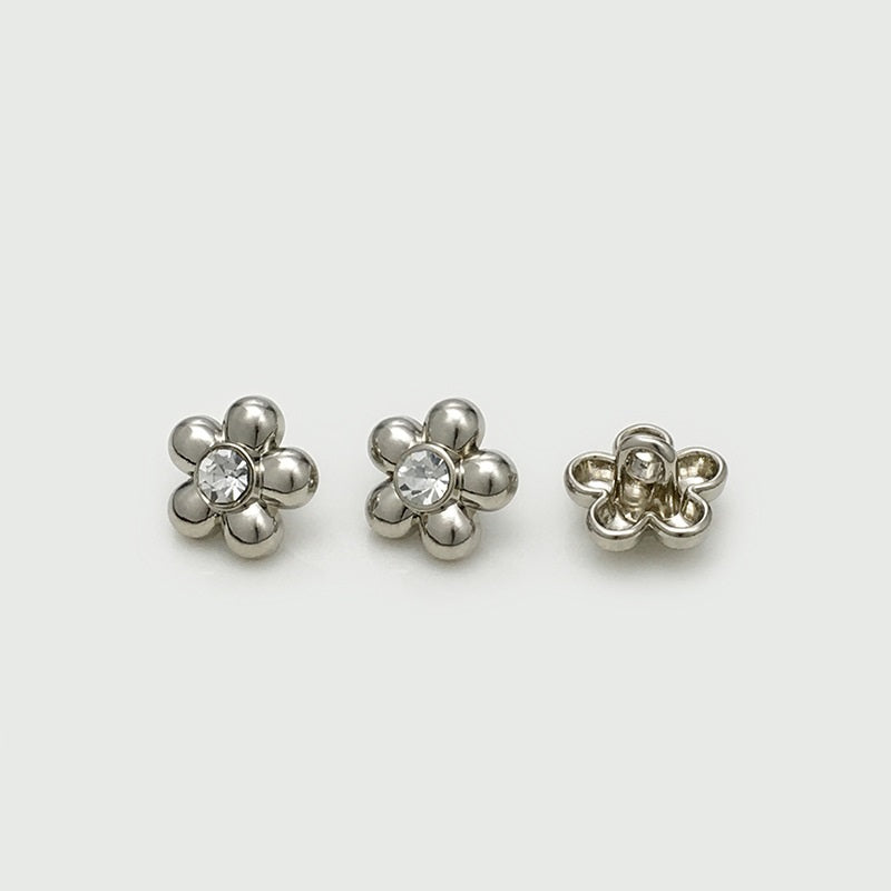 Îmbunătățiți-vă cămășile cu nasturii noștri metalici pentru cămăși cu floare de diamant de 11 mm în aur, argint și negru. Acești nasturi prezintă un design fermecător de floare, împodobit cu diamante strălucitoare, adăugând o notă de eleganță oricărei cămăși. Confecționați din metal de înaltă calitate, sunt disponibili în finisaje aurii, argintii și negre, fiind perfecți pentru o varietate de cămăși și bluze. Datorită construcției durabile și designului atrăgător, acești nasturi sunt o alegere ideală pentru cei care apreciază măiestria tradițională și accesoriile de modă unice.