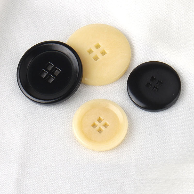 Acești nasturi sunt disponibili în mărimi de 15mm, 20mm și 25mm, având un design unic cu găuri pătrate creat prin tăiere laser. Sunt fabricați din fructe naturale și vin în culorile bej și negru, fiind potriviți atât pentru costumele și puloverele bărbaților, cât și pentru cele ale femeilor.