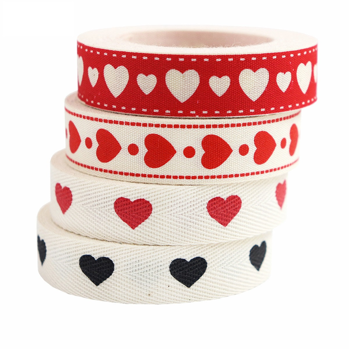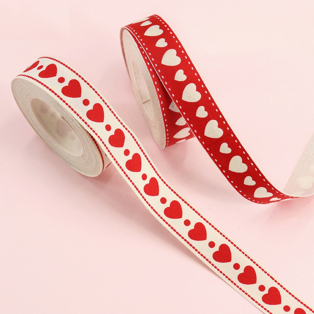 Panglică de bumbac 16mm inimă de Valentine's pentru decorațiuni de nuntă 40 de yarzi
