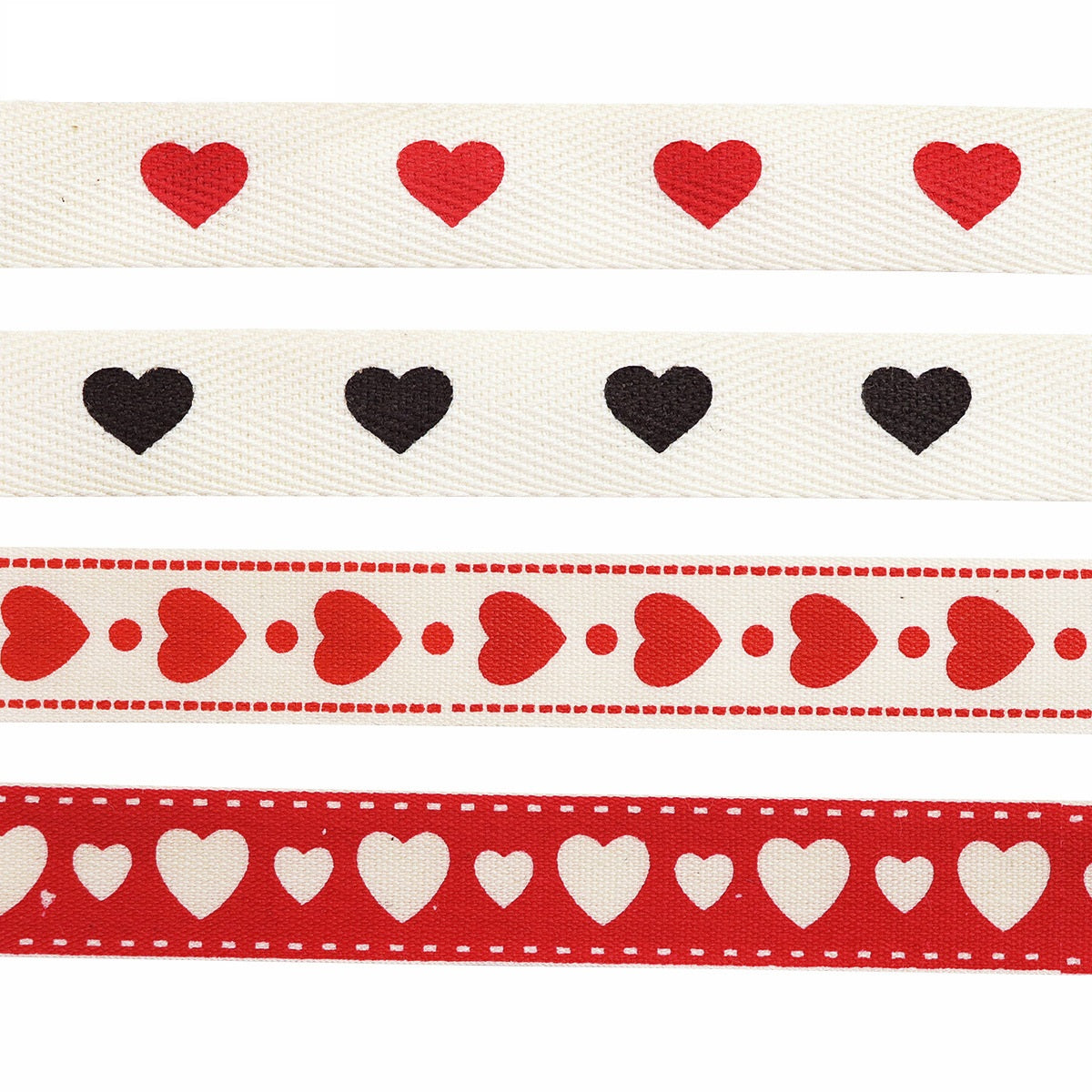 Panglică din bumbac lată de 16mm cu design cu inimioare de Ziua Îndrăgostiților pentru decorațiuni de nuntă, set de 4 bucăți, 40 de yarzi (10 yarzi pe rolă)