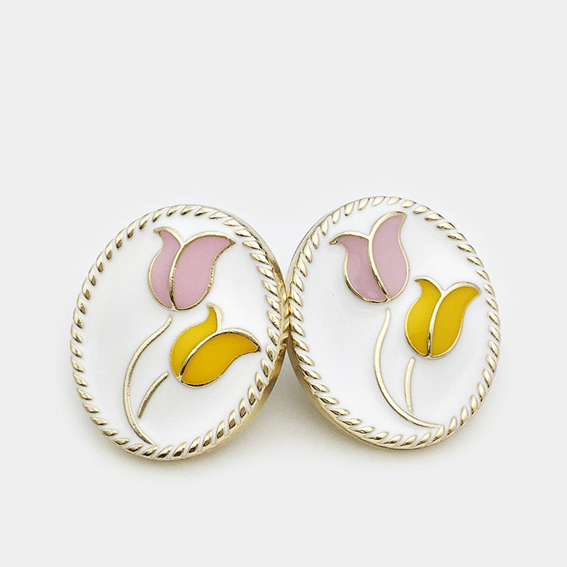 Nasturi metalici ovali cu floare de lalea 17/21mm, 20 bucăți