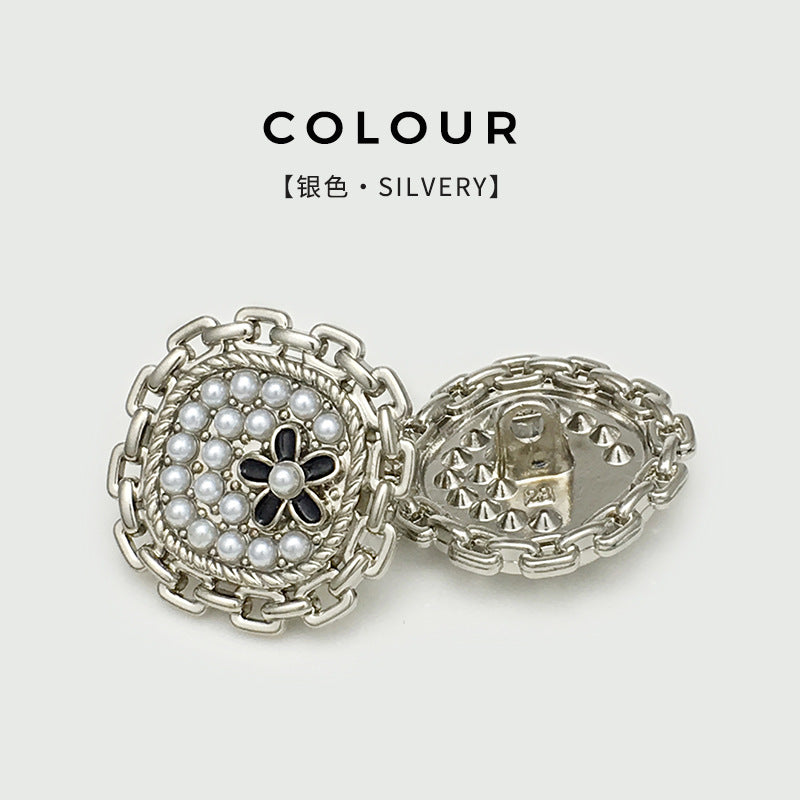 Nasturi metalici pătrați cu floare de perlă și lanț aurii și argintii 17,5/22,5mm - set de 12 bucăți