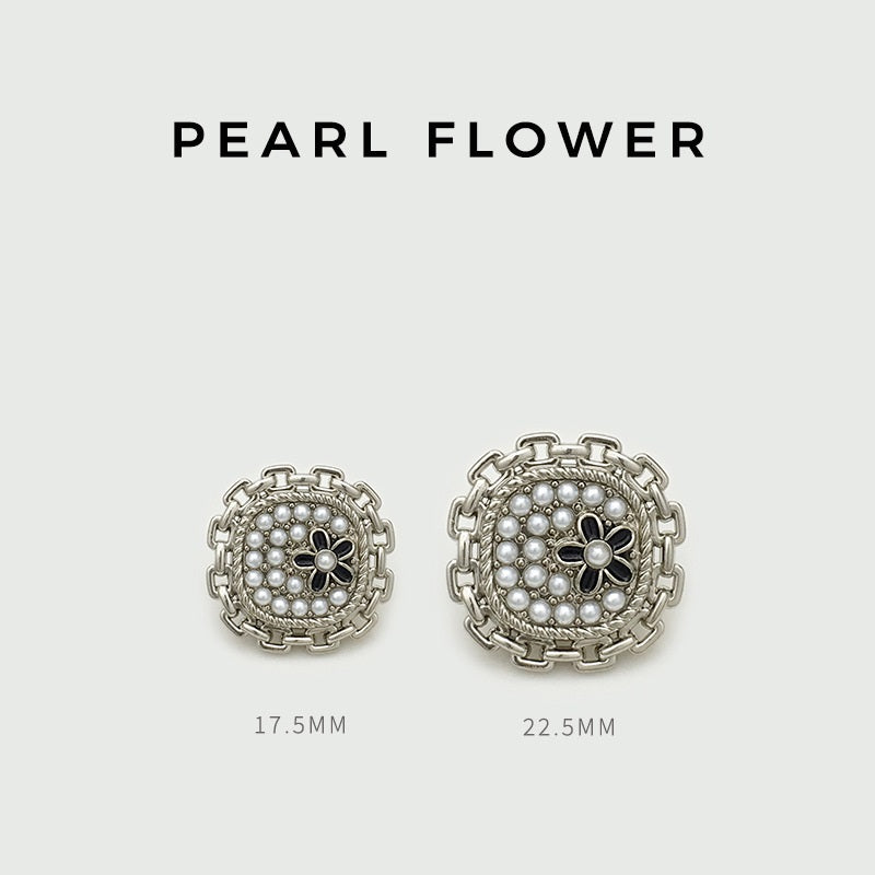 Lanț auriu argintiu 17.5/22.5mm Butoane metalice pătrate cu perle și flori 12 bucăți