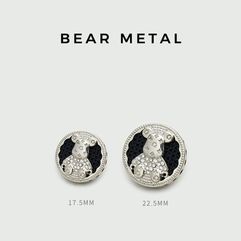 Butoane metalice rotunde cu urs și diamant 17.5/22.5mm, 6 bucăți