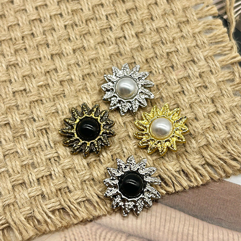 Butoane metalice vintage în formă de floarea-soarelui cu perle, 18/20/23mm, set de 48 bucăți