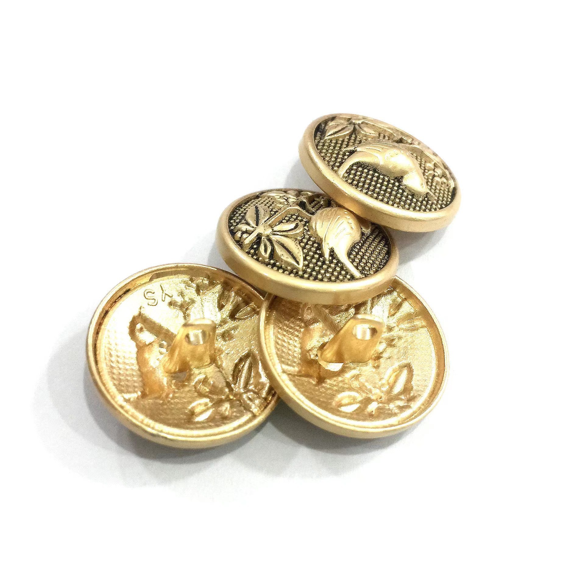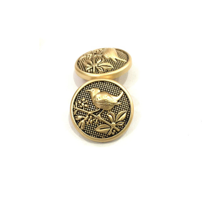 Butoane rotunde din metal pentru cusut, aur mat negricios, 18/23/25mm, model pasăre și floare, 50 bucăți