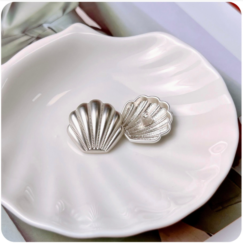 Butoane cu tijă metalică stil cochilie argintiu auriu mat francez 18/23mm, 12 bucăți