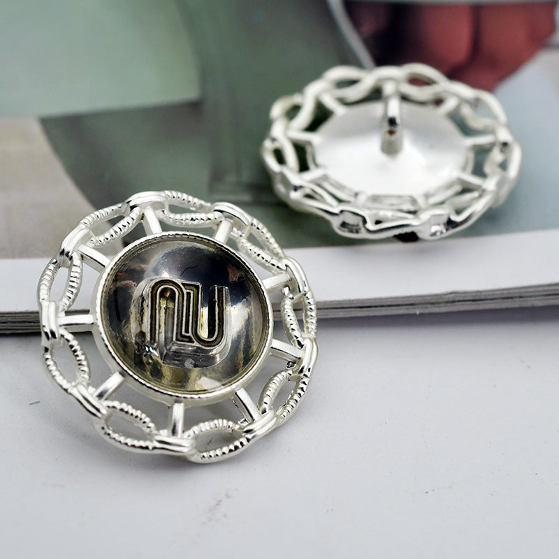 Acești nasturi eleganți cu tijă metalică de 18/23mm prezintă un design clasic cu litera "M", perfect pentru a adăuga sofisticare costumelor, rochiilor și hainelor exterioare. Confecționați din aliaj de zinc de înaltă calitate, oferă durabilitate și un finisaj lustruit. Stilul cu tijă permite atașarea fără cusur la haine, oferind un aspect curat și rafinat. Disponibili în două dimensiuni, acești nasturi sunt ideali pentru diverse proiecte de cusut și pot ridica stilul oricărui articol croit.