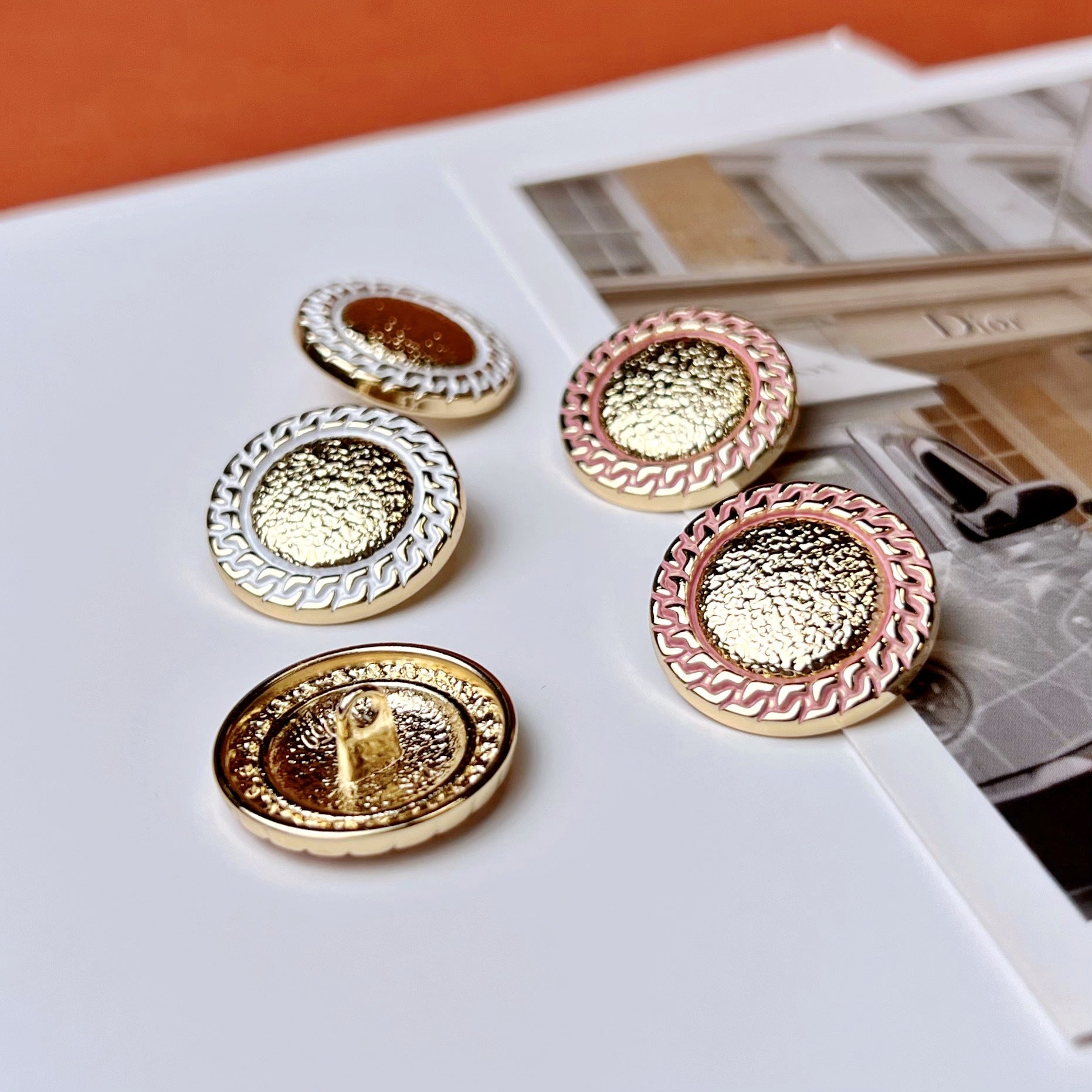 Îmbunătățiți-vă designurile cu butoanele noastre metalice cu margine în lanț de 18/23MM, în roz, alb și negru, cu finisaj auriu-roz. Aceste butoane prezintă un design unic cu margine în lanț, într-o combinație de roz, alb și negru, finisate cu un ton luxos auriu-roz, perfecte pentru a adăuga o notă modernă și șic bluzelor, rochiilor și articolelor ușoare de îmbrăcăminte. Realizate din metal de înaltă calitate, sunt durabile și rezistente, păstrându-și aspectul elegant. Disponibile în două dimensiuni versatile, aceste butoane sunt ideale pentru designeri de modă, meșteri și pasionați DIY. Ridicați-vă creațiile cu aceste butoane elegante și atrăgătoare chiar astăzi!