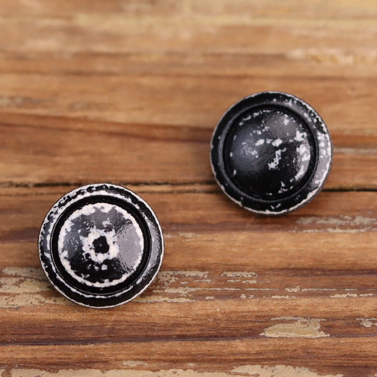 Set 12 nasturi din lemn lăcuit alb-negru vintage 18L cu aspect uzat, cu tija metalică