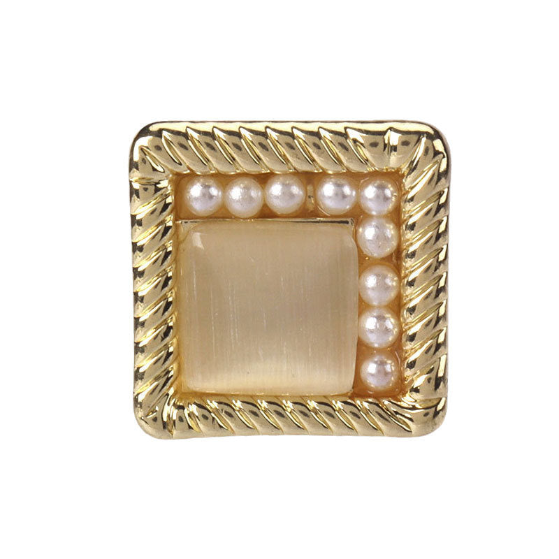 Buton perlat pătrat metalic auriu 18mm, 4 bucăți