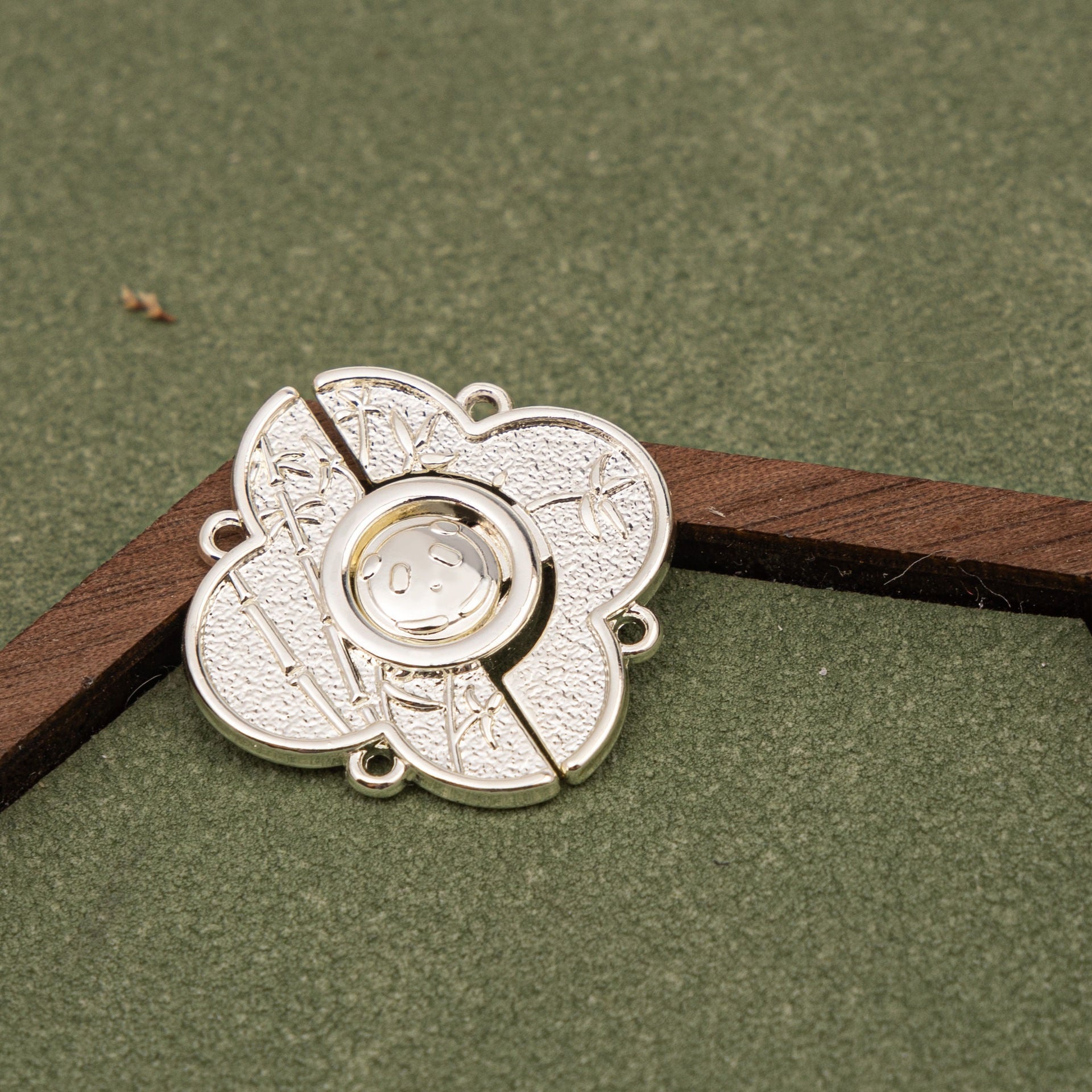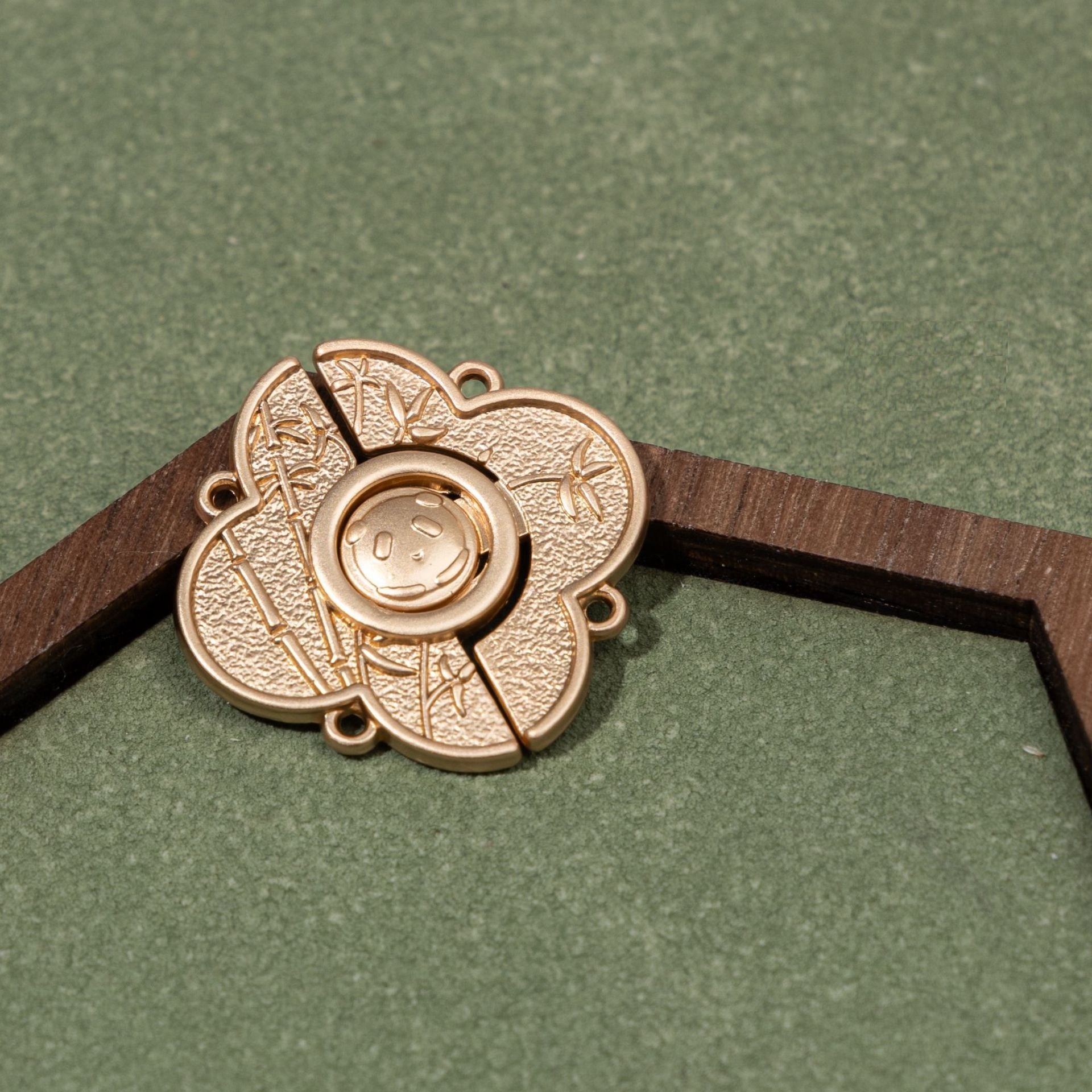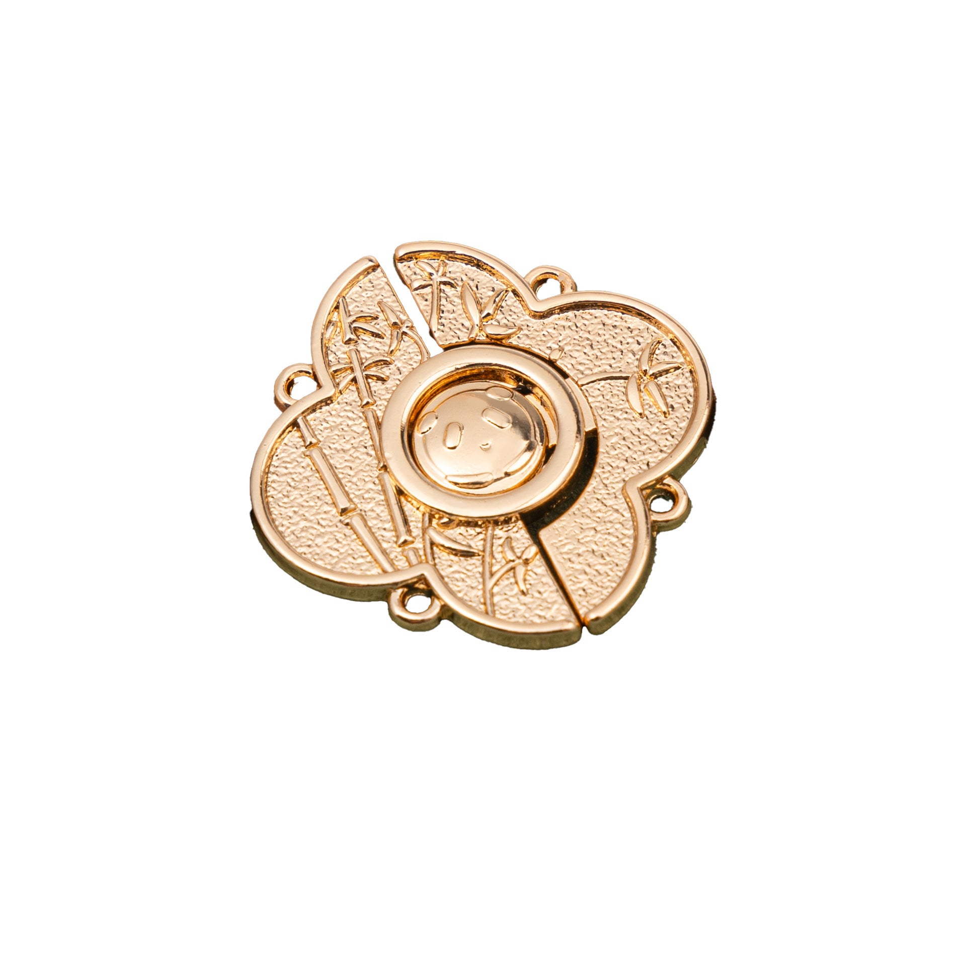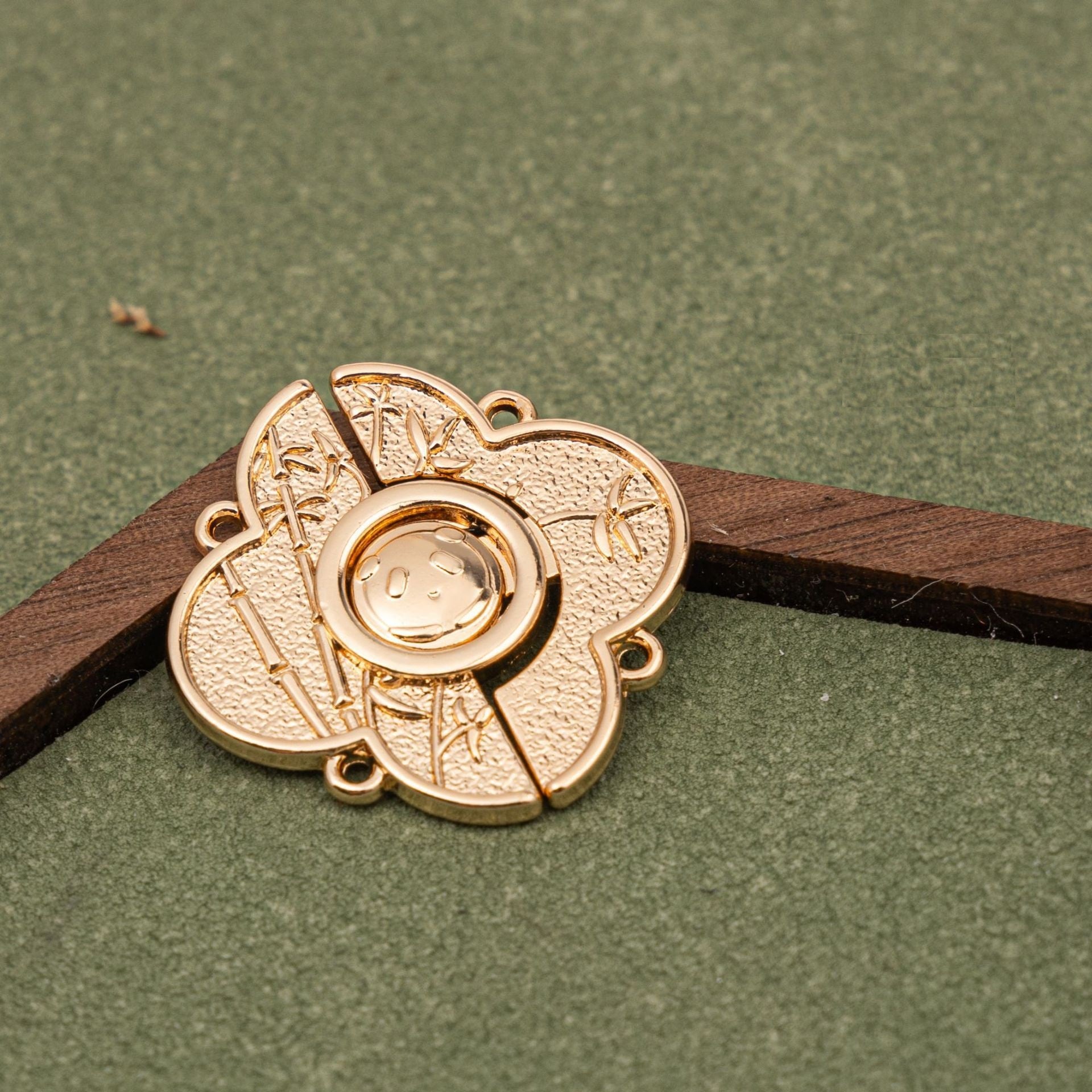 Acești nasturi metalici pereche de 2.5cm sunt o manifestare încântătoare a stilului și farmecului chinezesc. Nasturii prezintă o combinație unică de elemente - un nor pufos auriu, un panda adorabil și bambus proaspăt, toate proiectate cu minuțiozitate. Culoarea aurie oferă o senzație luxoasă și vintage, în timp ce gravura detaliată a panda-ului și bambusului aduce un aer jucăuș și o semnificație culturală. Confecționați din metal de înaltă calitate, sunt durabili și au un finisaj neted. Ideali pentru a adăuga o notă de eleganță chineză hainelor precum jachete, cămăși sau chiar haine pentru copii. Ei nu servesc doar ca elemente funcționale de prindere, ci și ca ornamente atrăgătoare care spun o poveste despre patrimoniul chinezesc. Fie pentru o zi casual sau un eveniment special cu tematică orientală, acești nasturi vor îmbunătăți cu siguranță aspectul general, făcând purtătorul să iasă în evidență prin designul lor unic și adorabil.