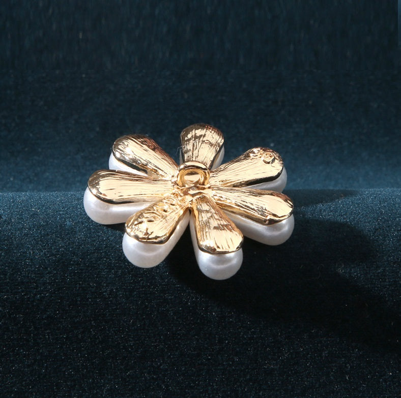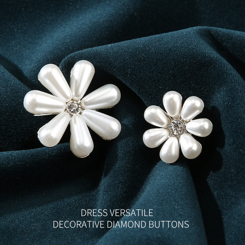 Mâner metalic cu bază și nasture perlat floral 23-32mm pentru haine de copii, 6 bucăți