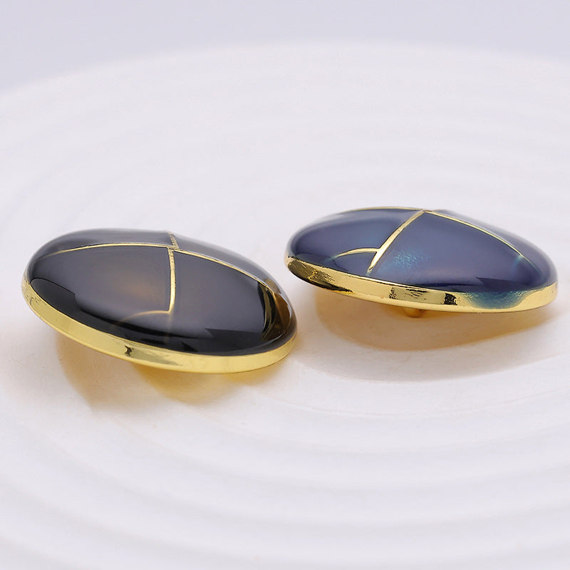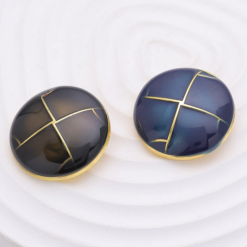 Set de 6 nasturi metalici cusuti manual, de 23mm, cu model în cruce negru și albastru și accente aurii translucide, de înaltă calitate