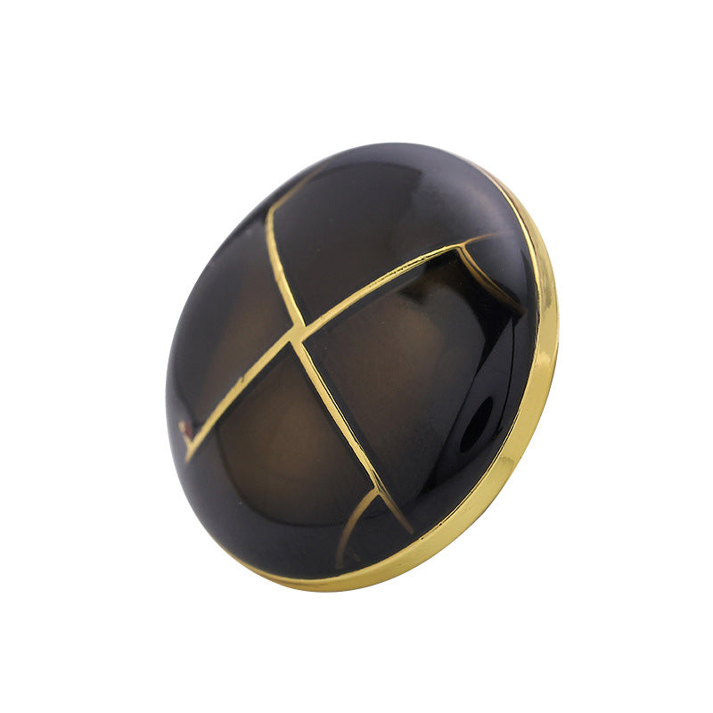 Acest nasture metalic cusut manual de înaltă calitate, cu model în cruce negru și albastru de 23mm și accente aurii translucide, este un accesoriu cu adevărat remarcabil. Combinația de model în cruce negru și albastru cu o notă de aur translucid îi conferă un aspect elegant și luxos.