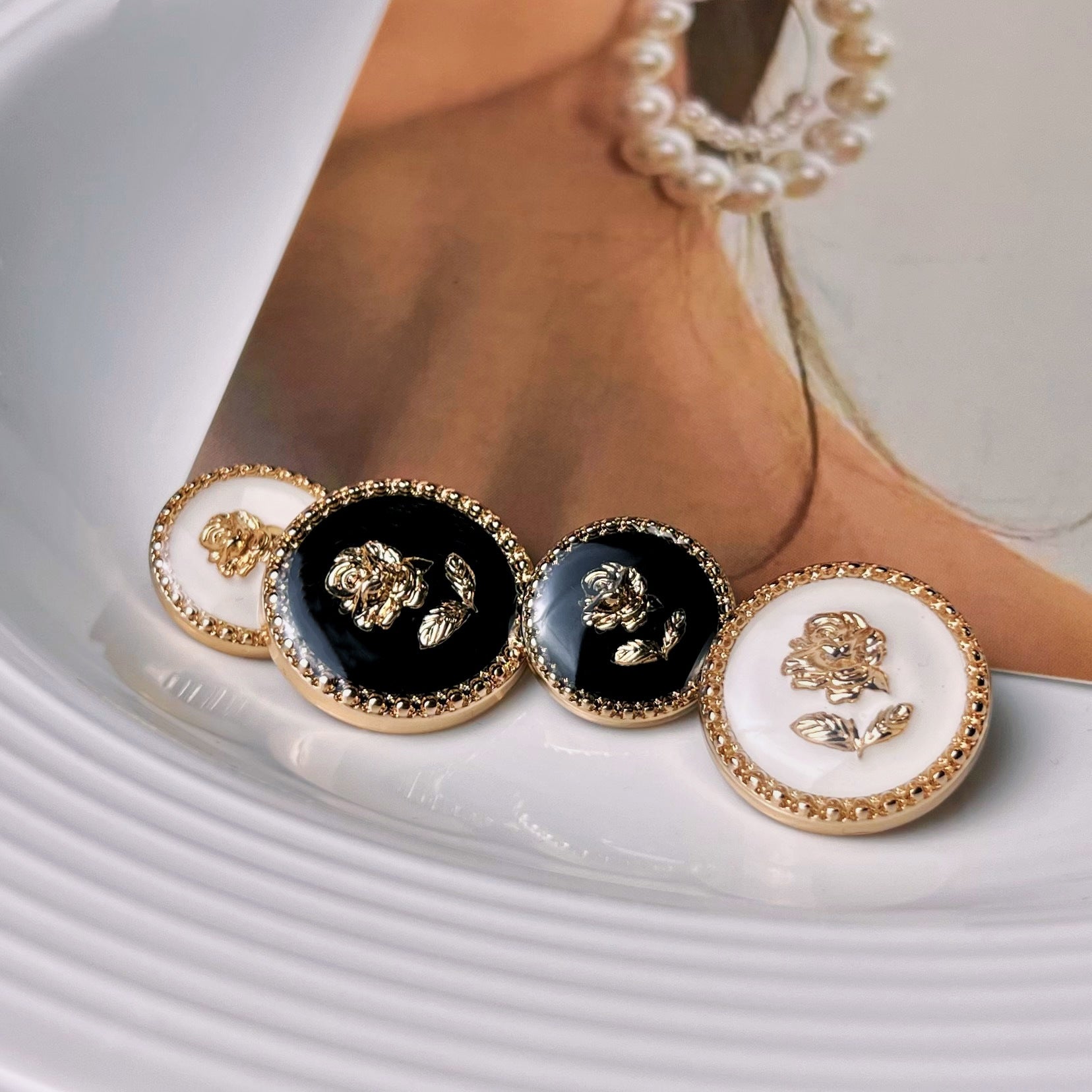 Adaugă o notă de eleganță proiectelor tale de cusut cu aceste nasturi rotunzi din metal de 23 mm. Fiecare nasture are un design fermecător cu trandafir și un finisaj auriu, îmbunătățit de un strat de rășină care adaugă o strălucire luxoasă. Acești nasturi de înaltă calitate sunt perfecți pentru jachete, paltoane și proiecte DIY de modă, aducând un aspect atemporal și sofisticat oricărei haine.