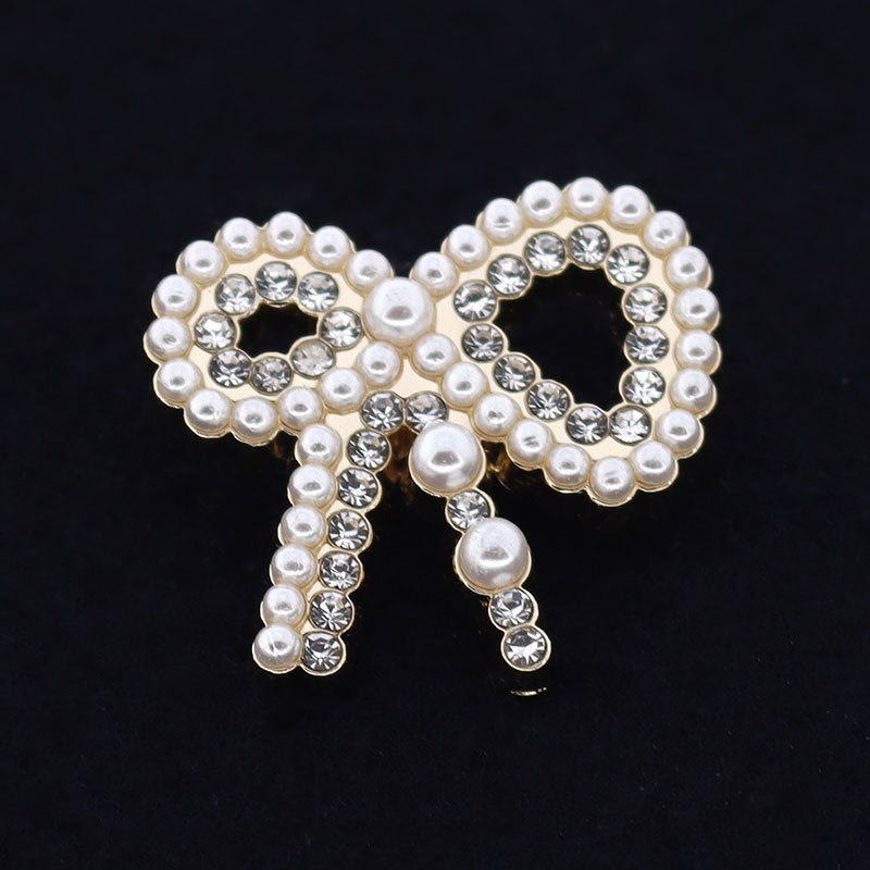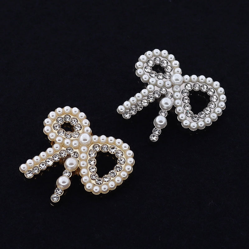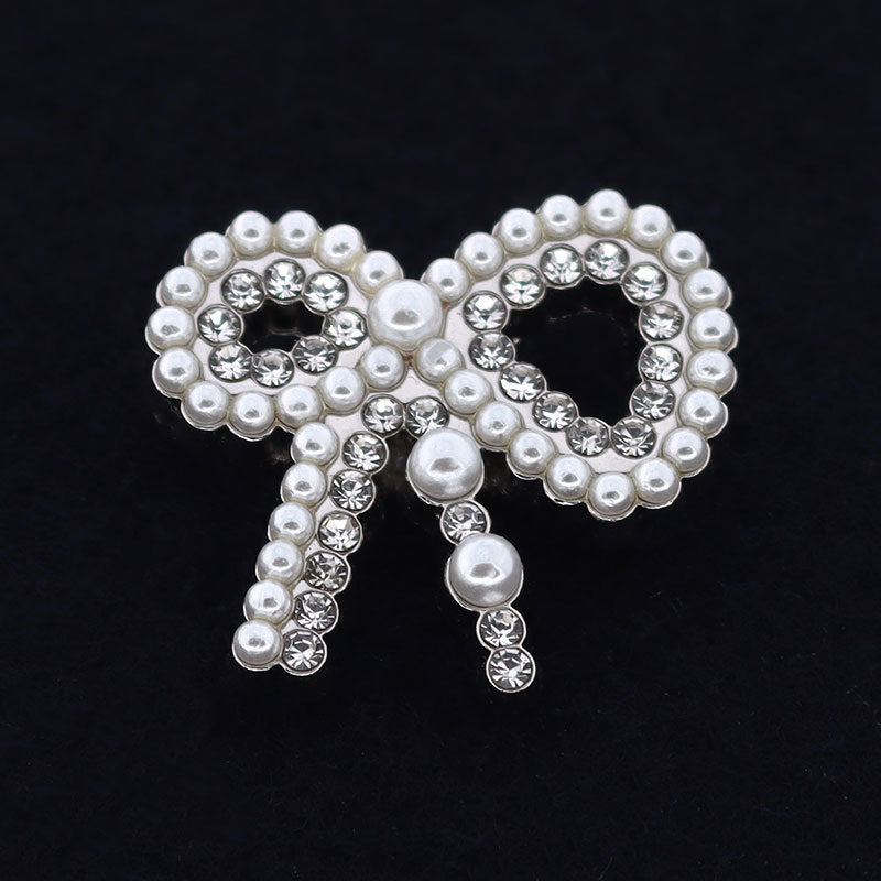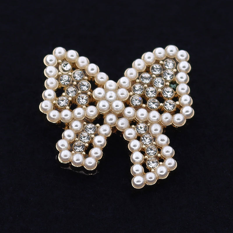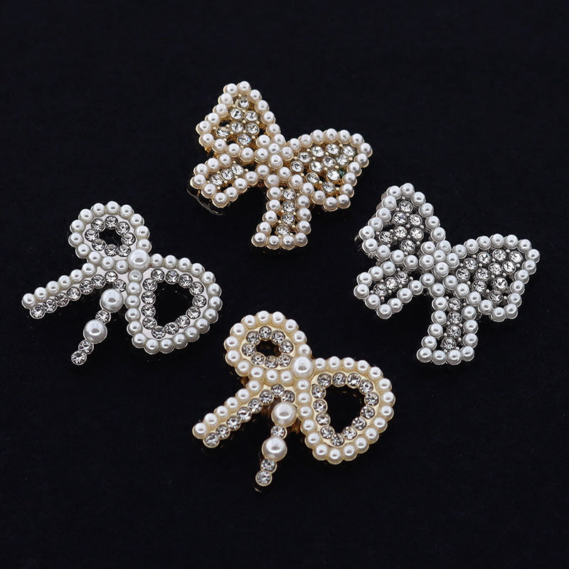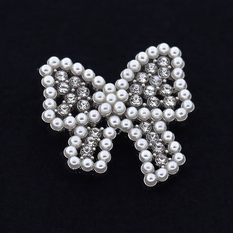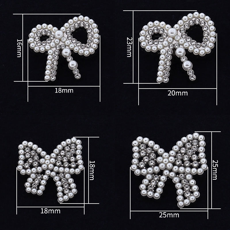Set de 10 nasturi metalici în formă de fundă, cu perle și strasuri, cu picioruș pentru pulovere cardigan, mărimi 18/20/23/25mm