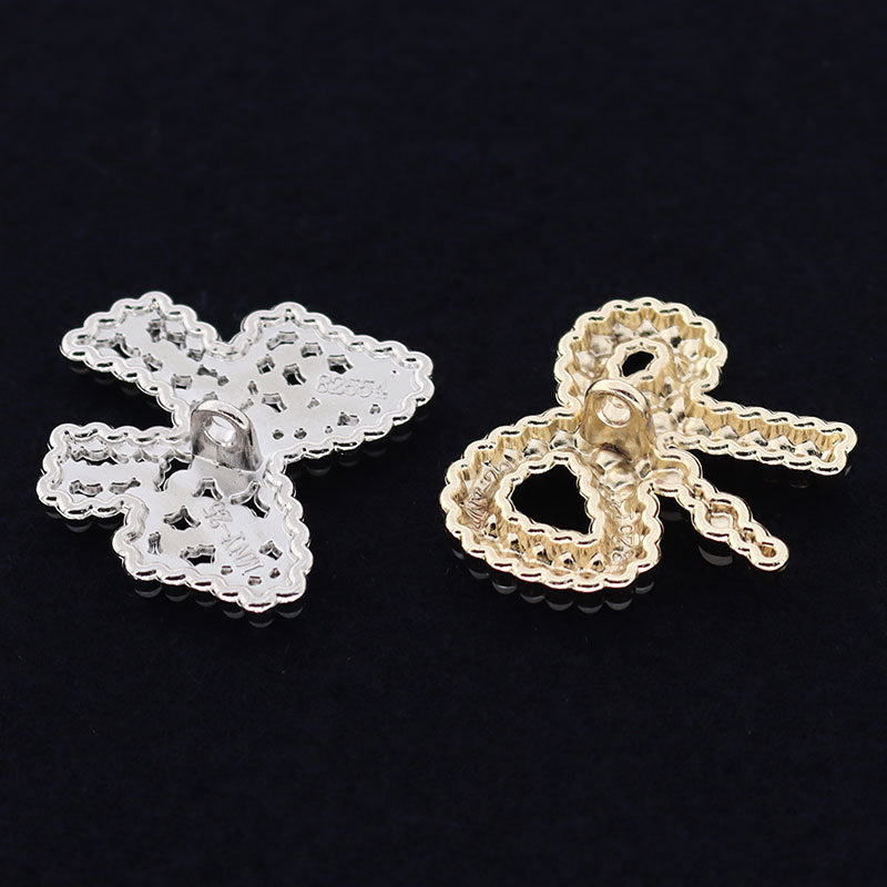 Acești nasturi de 18/20/23/25mm sunt o adevărată încântare pentru orice articol vestimentar, în special pentru pulovere cardigan. Designul în formă de fundă este fermecător și elegant, adăugând o notă de feminitate. Confecționați din metal de înaltă calitate, acești nasturi sunt durabili și au o senzație solidă.