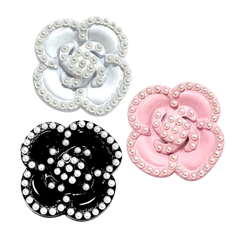 Nasturi cu tija metalică perlată Camellia de 25mm pentru cardiganuri și pulovere 6 bucăți