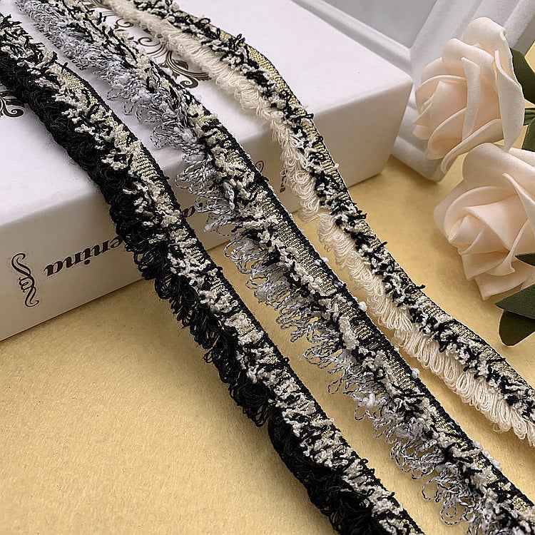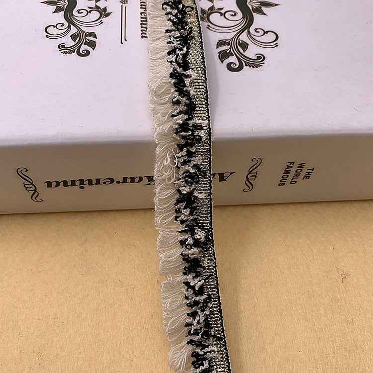 Dantelă cu franjuri alb-negru lată de 2CM – Ornare DIY pentru haine cu o singură margine, 10 yarzi