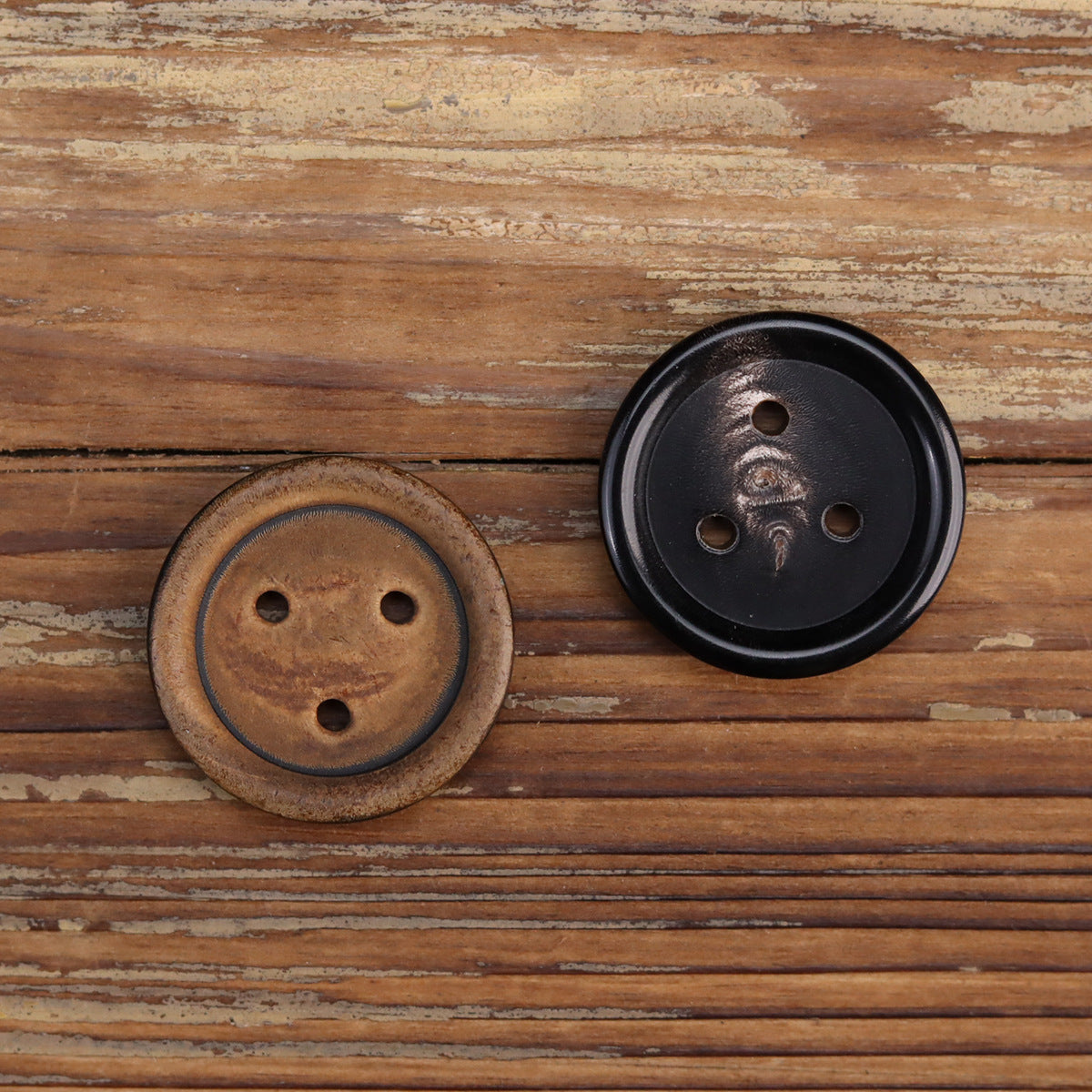 Acești nasturi retro negri din corn cu 3 găuri emană un farmec clasic cu o notă de atracție vintage. Culoarea neagră oferă un aspect atemporal, în timp ce nuanțele galben-maronii adaugă căldură și caracter. Ideali pentru windbreakere pentru bărbați, jachete în tonuri pământii, costume și pantaloni, acești nasturi sunt realizați cu perfecțiune. Confecționați din corn autentic, nu sunt doar durabili, ci au și o textură unică. Finisajul uzat le conferă un aspect îmbătrânit, făcându-i perfecți pentru a adăuga o notă de nostalgie garderobei tale. Lasă acești nasturi să fie atingerea finală a ținutelor tale stilate.