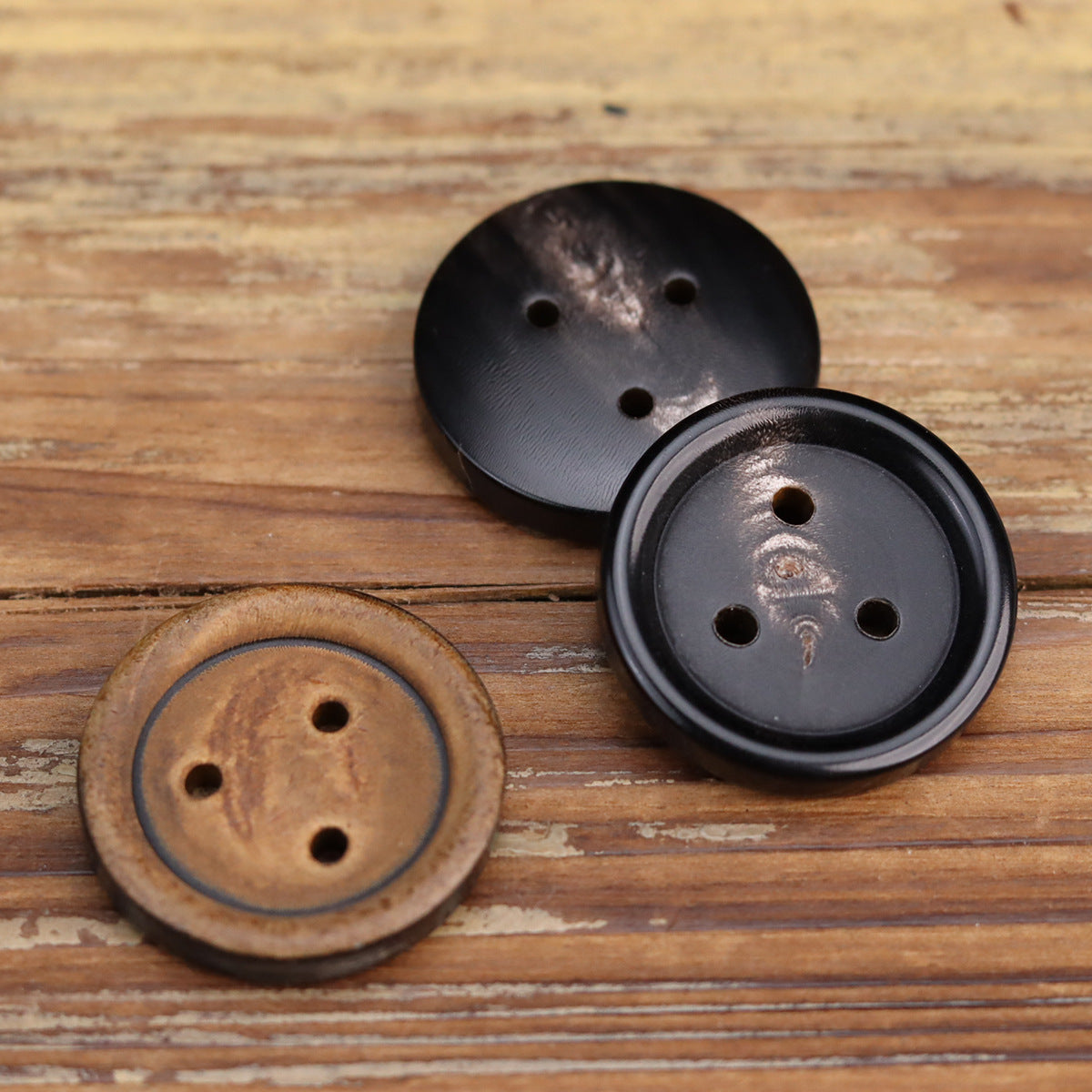 Nasturi Retro din Corn Negru cu 3 Gauri - Galben-Maronii, Ideali pentru Windbreakere pentru Bărbați, Jachete Pământii, Costume și Pantaloni, Nasturi Uzati 10buc