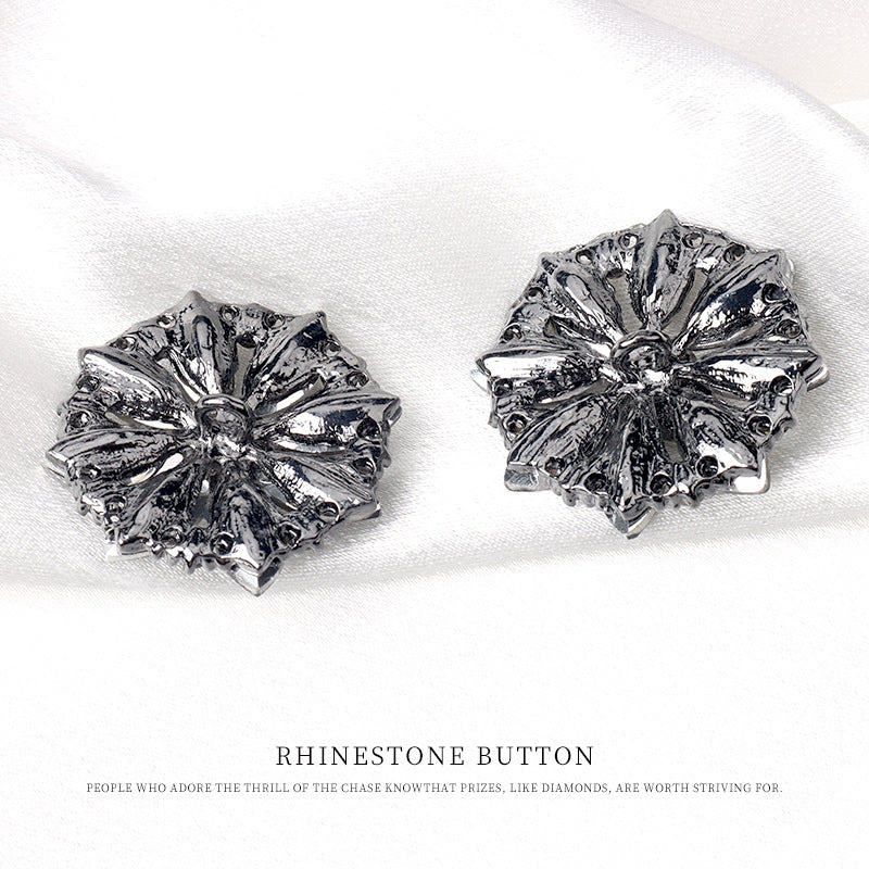 Acești nasturi de 31mm sunt o alegere luxoasă și atrăgătoare. Confecționați din metal de înaltă calitate, sunt solizi și durabili. Nasturii prezintă un design frumos în formă de petală, inspirat de eleganța florilor. Fiecare petală este atent lucrată cu cristale negre și strasuri. Cristalele negre au o atracție profundă și misterioasă, adăugând o notă de sofisticare. Strasurile, cu sclipirea lor strălucitoare, sporesc farmecul general al nasturilor. Combinația acestor elemente creează un efect vizual uimitor care prinde lumina din orice unghi. Acești nasturi sunt perfecți pentru a adăuga o notă de lux diferitelor articole vestimentare, cum ar fi paltoane, jachete sau rochii de seară. Ei pot transforma o piesă obișnuită de îmbrăcăminte într-o declarație de modă, făcând purtătorul să iasă în evidență cu farmecul său unic și elegant.