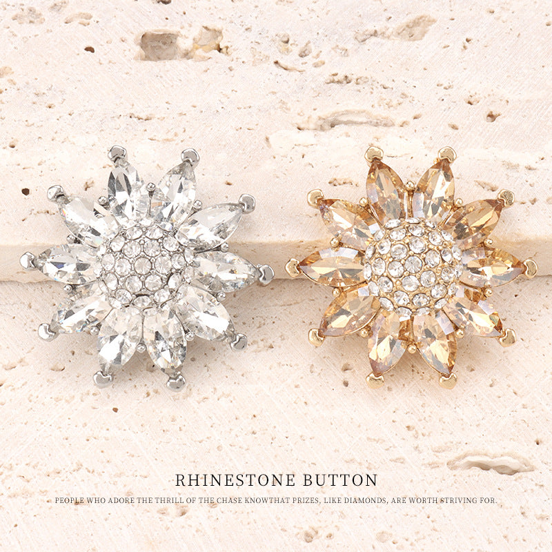 Nasturi cu tija metalică în formă florală de 32mm cu strasuri, pentru pulovere și haine exterioare, 2 bucăți