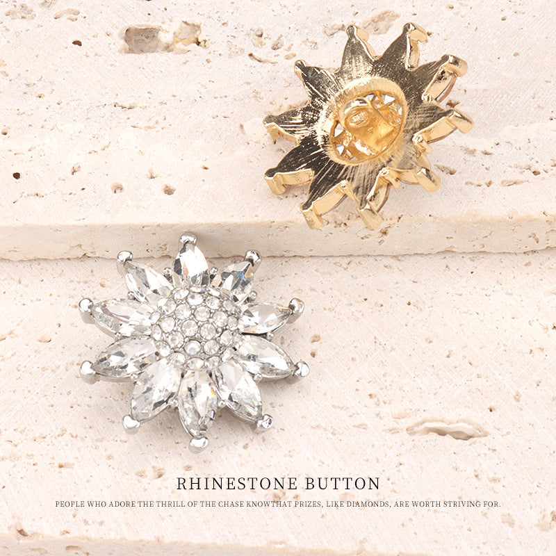 Acești nasturi de 32mm sunt o alegere excelentă pentru a spori farmecul puloverelor și hainelor exterioare. Confecționați din metal de înaltă calitate, sunt rezistenți și durabili, asigurând o utilizare pe termen lung. Designul în formă florală este punctul forte, aducând o notă de frumusețe naturală și eleganță. Fiecare petală este lucrată cu atenție, oferind nasturilor un aspect viu și tridimensional. Strasurile încrustate sunt de calitate superioară, strălucind puternic ca niște mici stele. Ele adaugă o notă luxoasă și glamour nasturilor, făcându-i să iasă în evidență din orice unghi. Când sunt cusute pe pulovere sau haine exterioare, acești nasturi transformă articolele vestimentare în piese la modă. Sunt perfecți pentru cei care iubesc să facă o declarație prin hainele lor, adăugând un element unic și atrăgător care face ca purtătorul să arate stilat și încrezător.