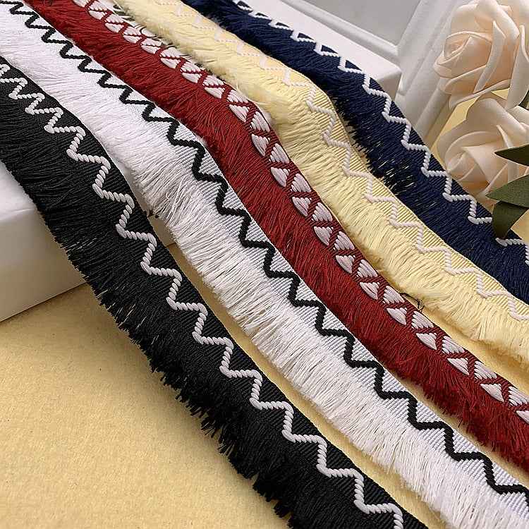 Adaugă textură dinamică creațiilor tale cu această dantelă cu franjuri ondulați lată de 3CM! Având un design jucăuș cu o singură margine, cu modele ondulate fluide și detalii delicate de franjuri, această dantelă este perfectă pentru a îmbunătăți haine, accesorii și proiecte DIY.